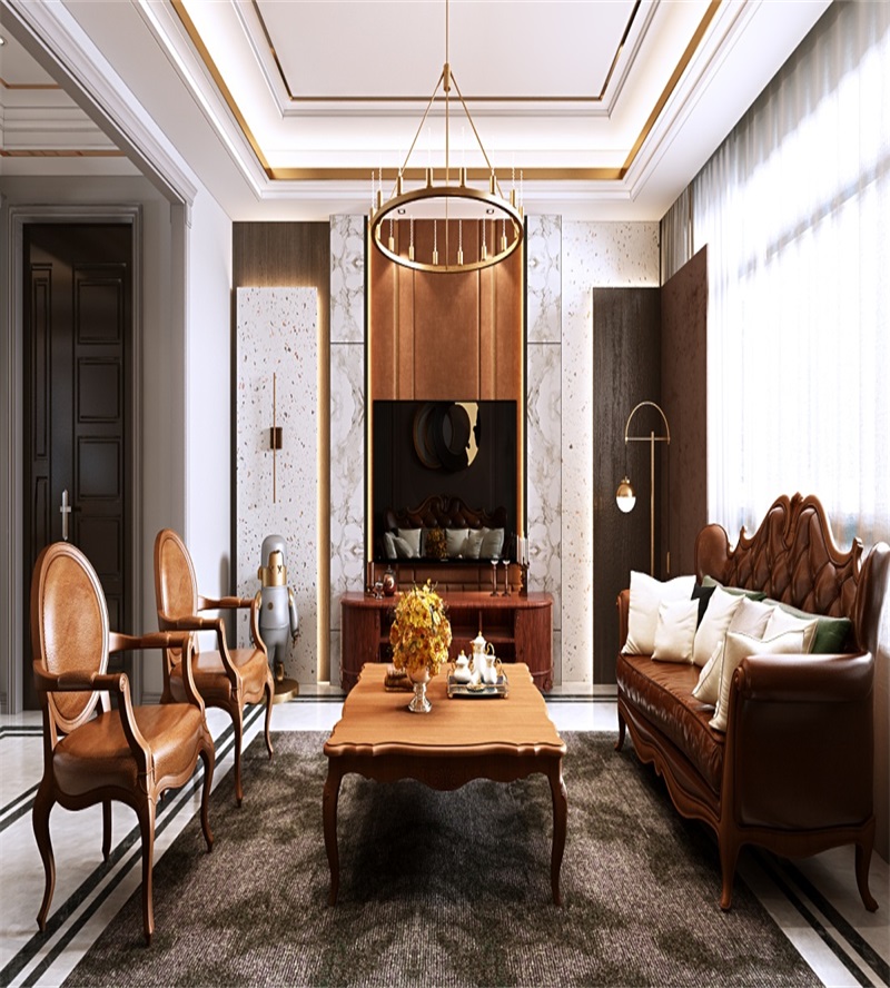 在美式風格裝修中,家具主要采用桃花木、櫻桃木、松木等材質制作,不僅充滿自然的氣息,而且擁有比較高的品質,家具的軟包主要采用皮質、質感的棉麻材料為主,非常舒適且實用。