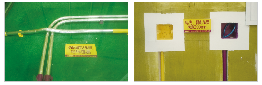 2、 線管敷設(shè)排列整齊美觀,強(qiáng)弱電線交叉位置使用錫紙包裹(間距200mm)