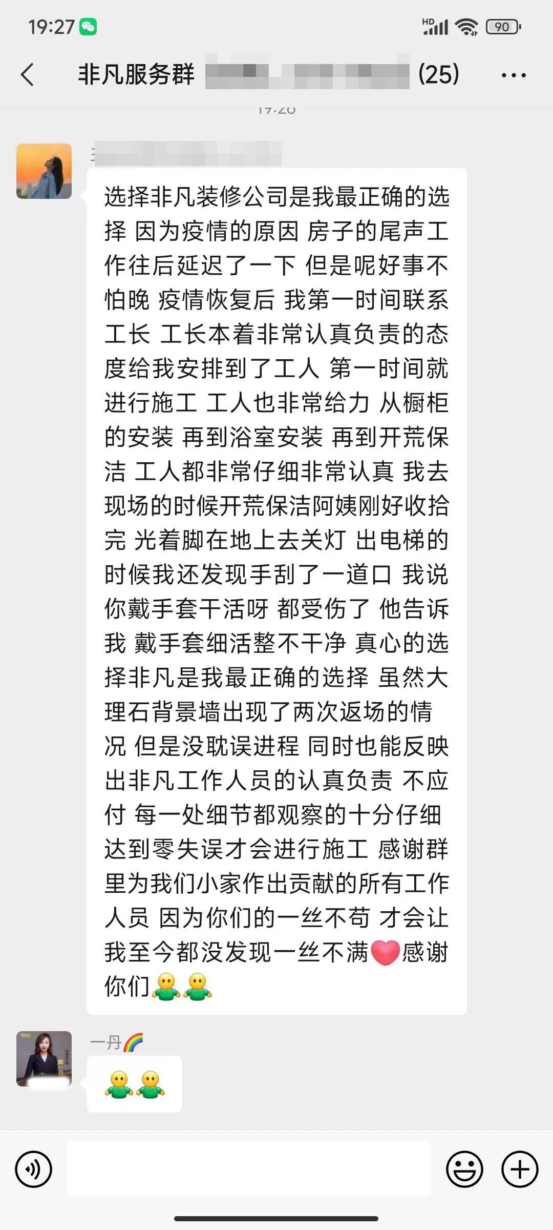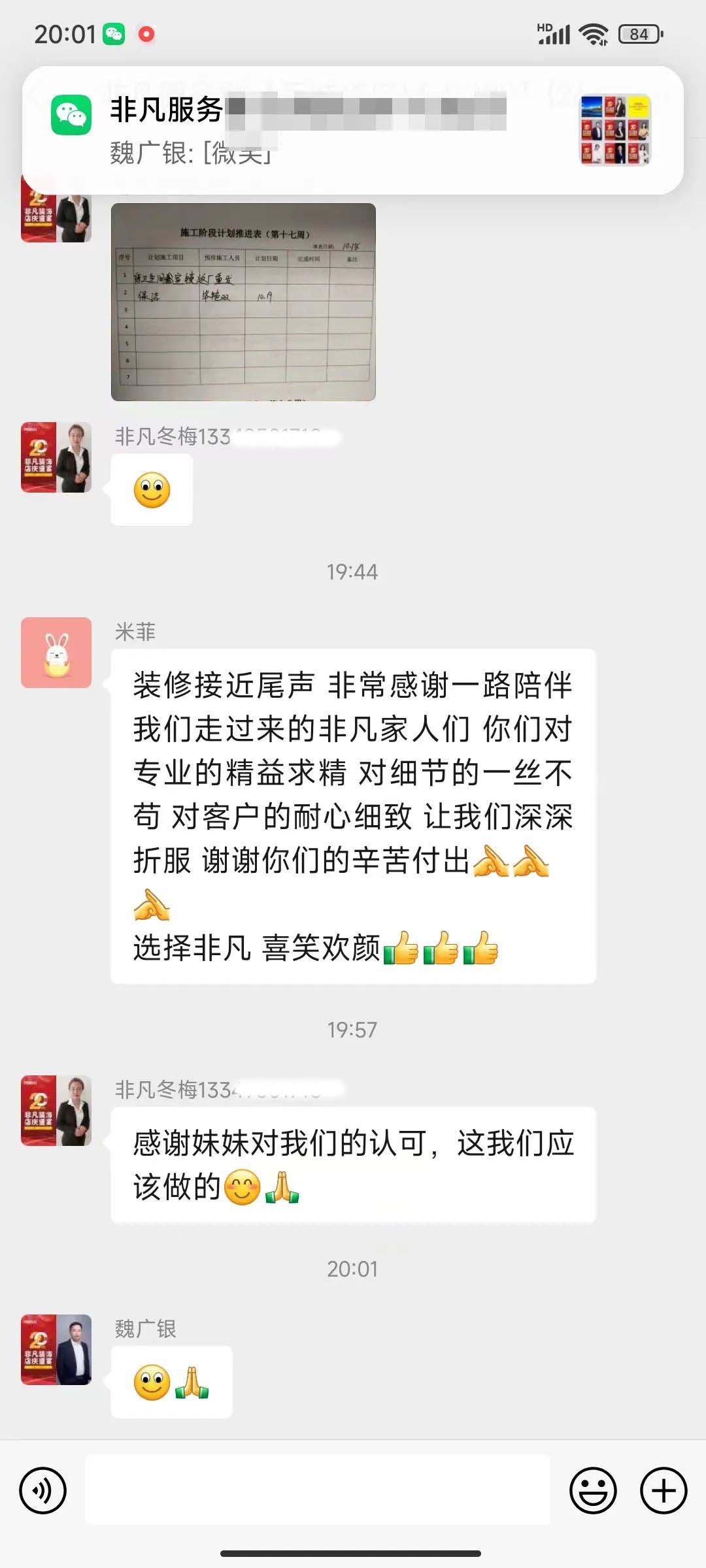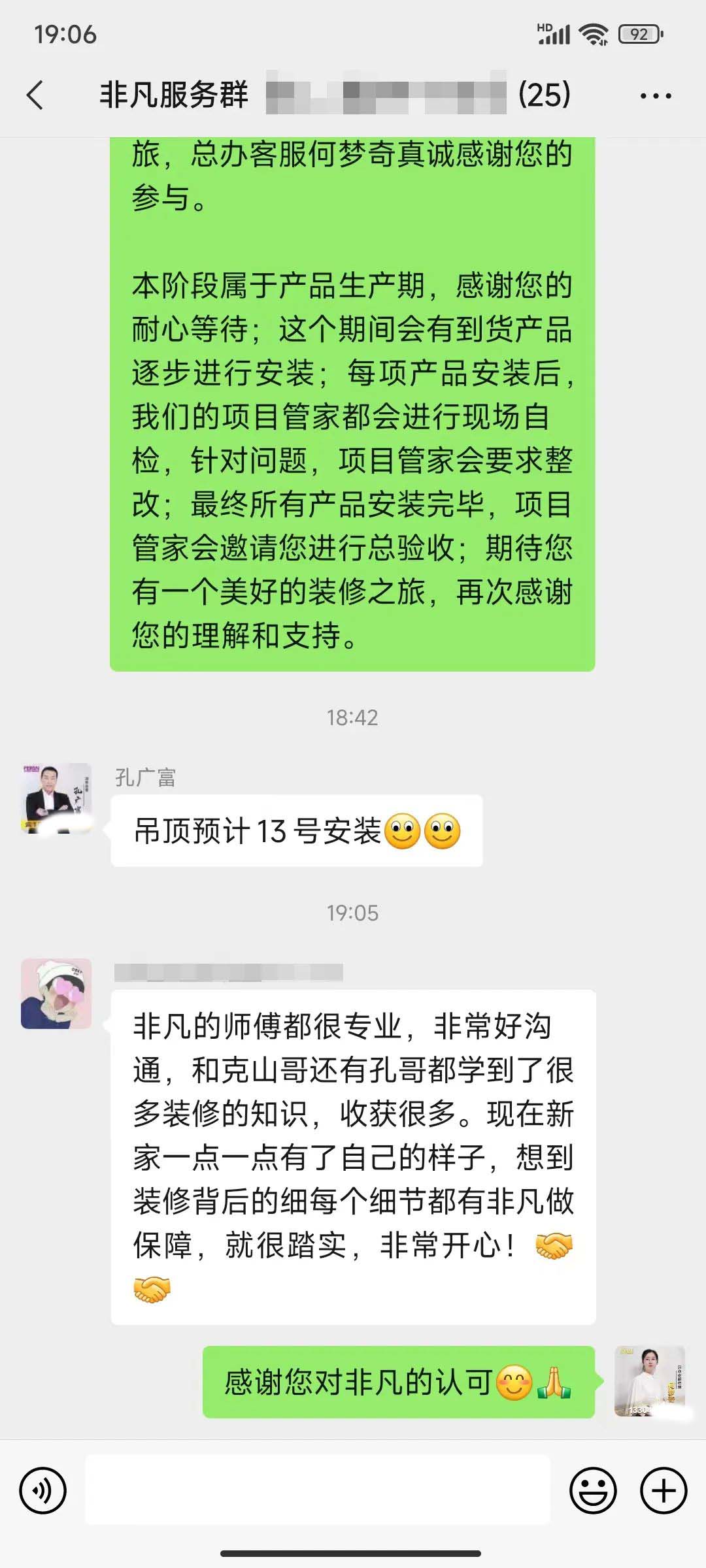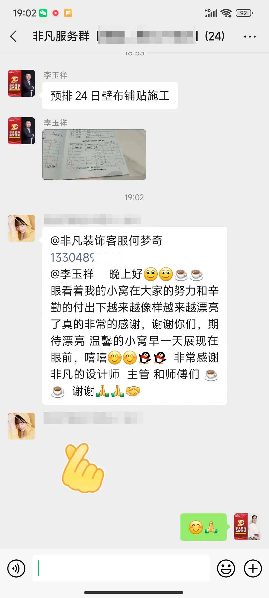 非凡的項目總管是整個裝修過程中的Superman,爬得了梯子通得了下水,做得了表格玩得了短視頻。客戶的每一句贊美中都有他們的辛苦和汗水!