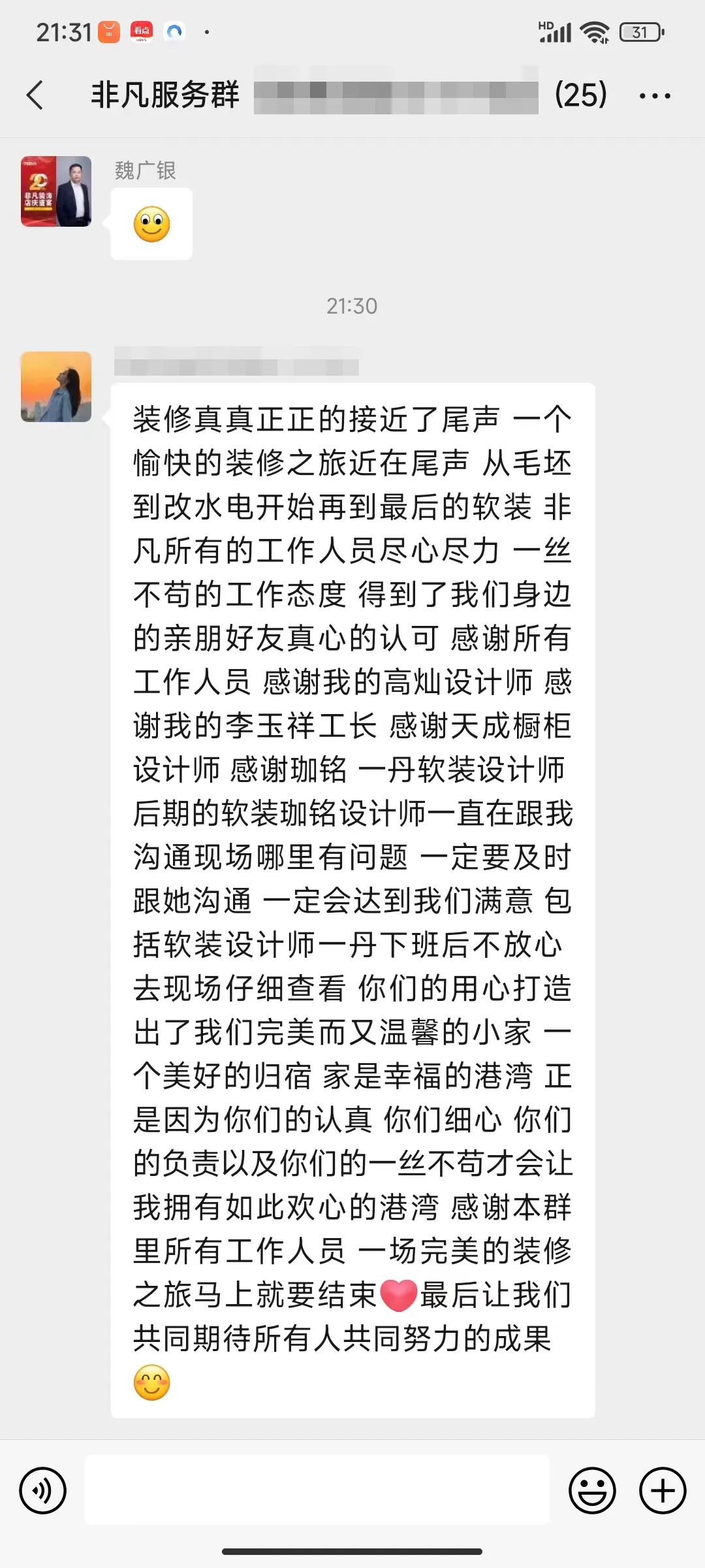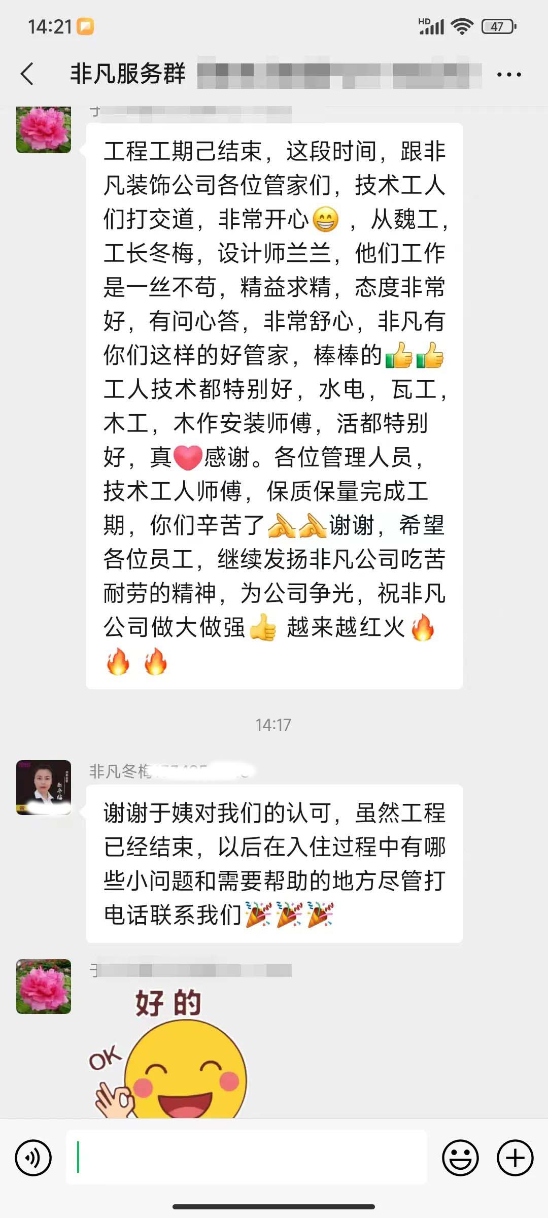 裝修是件交叉點繁多的事,且過程中涉及到的材料和工種較多。這個行業(yè)的滿意度好評來之不易,是每一位非凡人通力合作才能結(jié)出的寶貴果實。