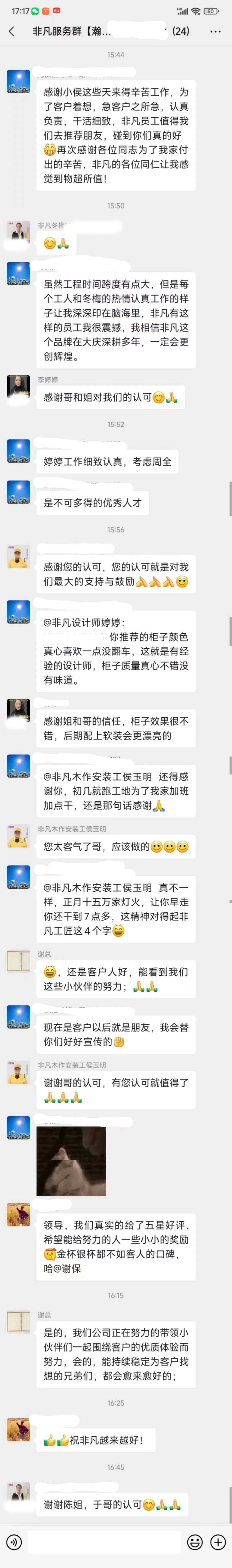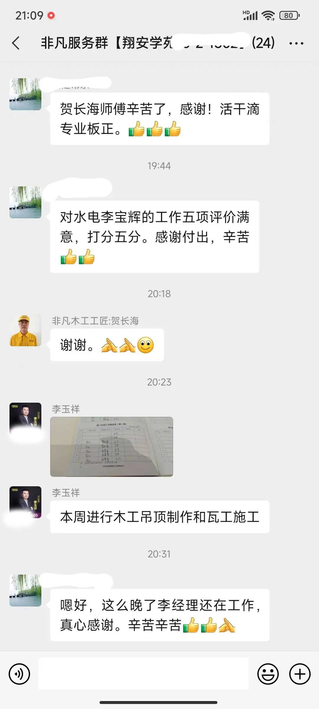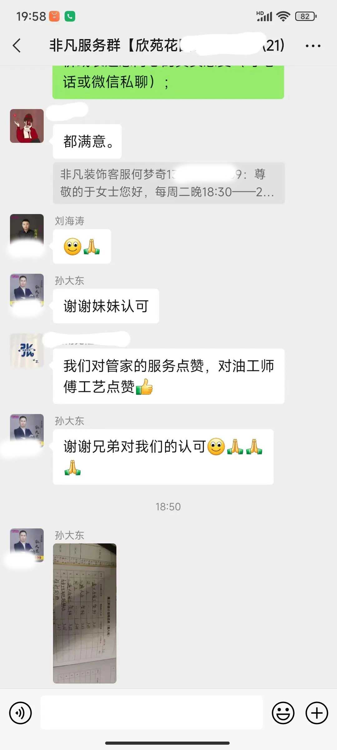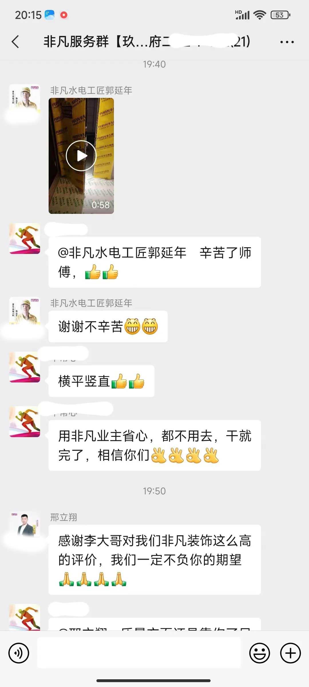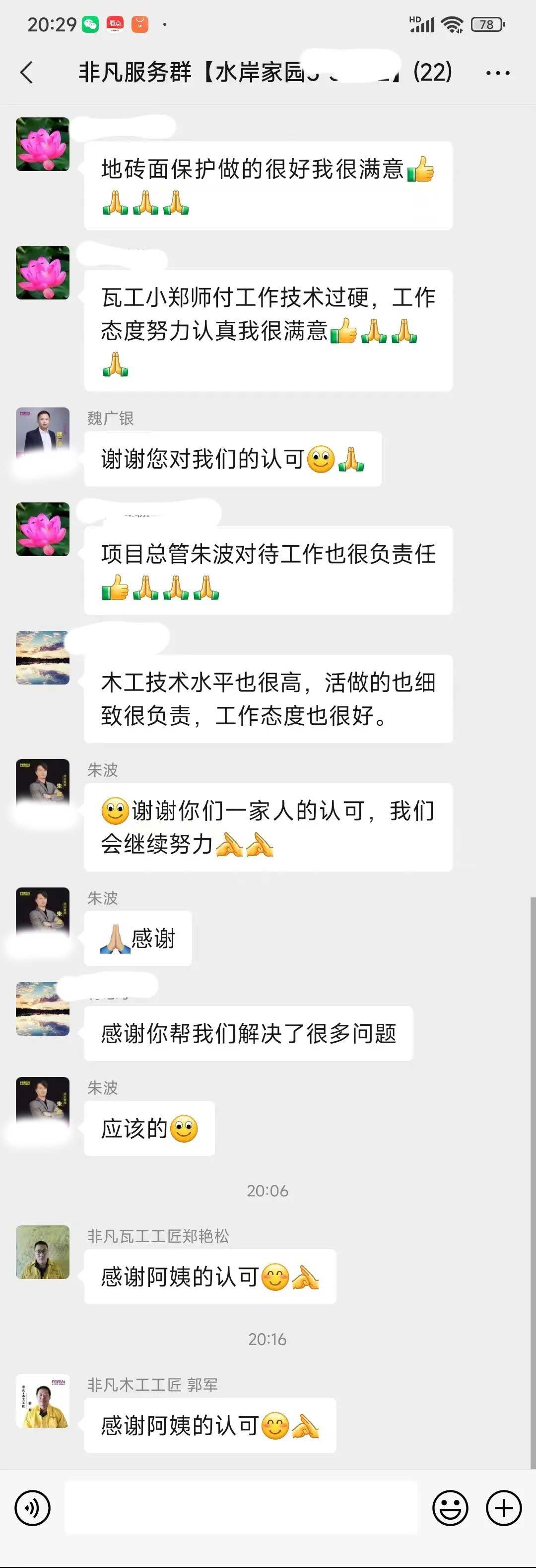 工人師傅收到的好評.