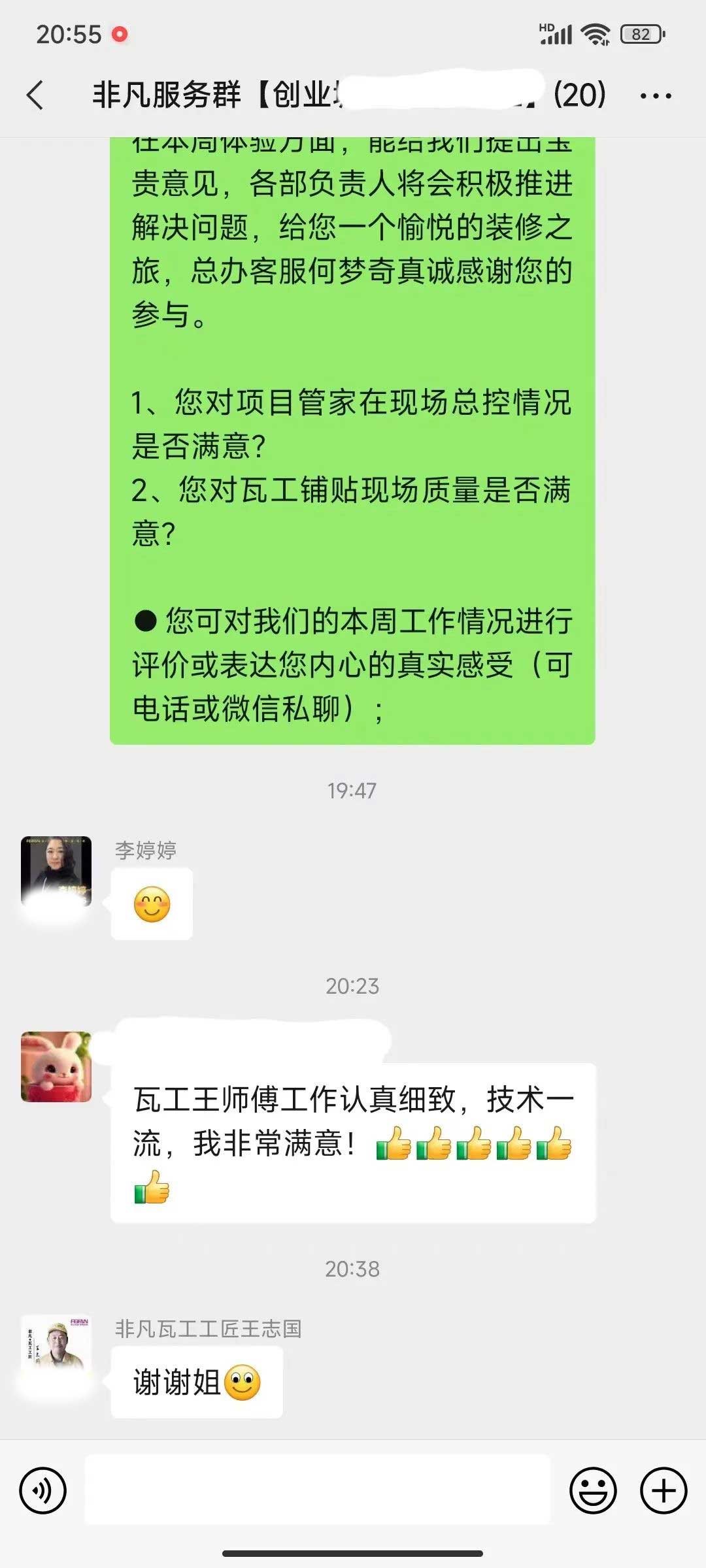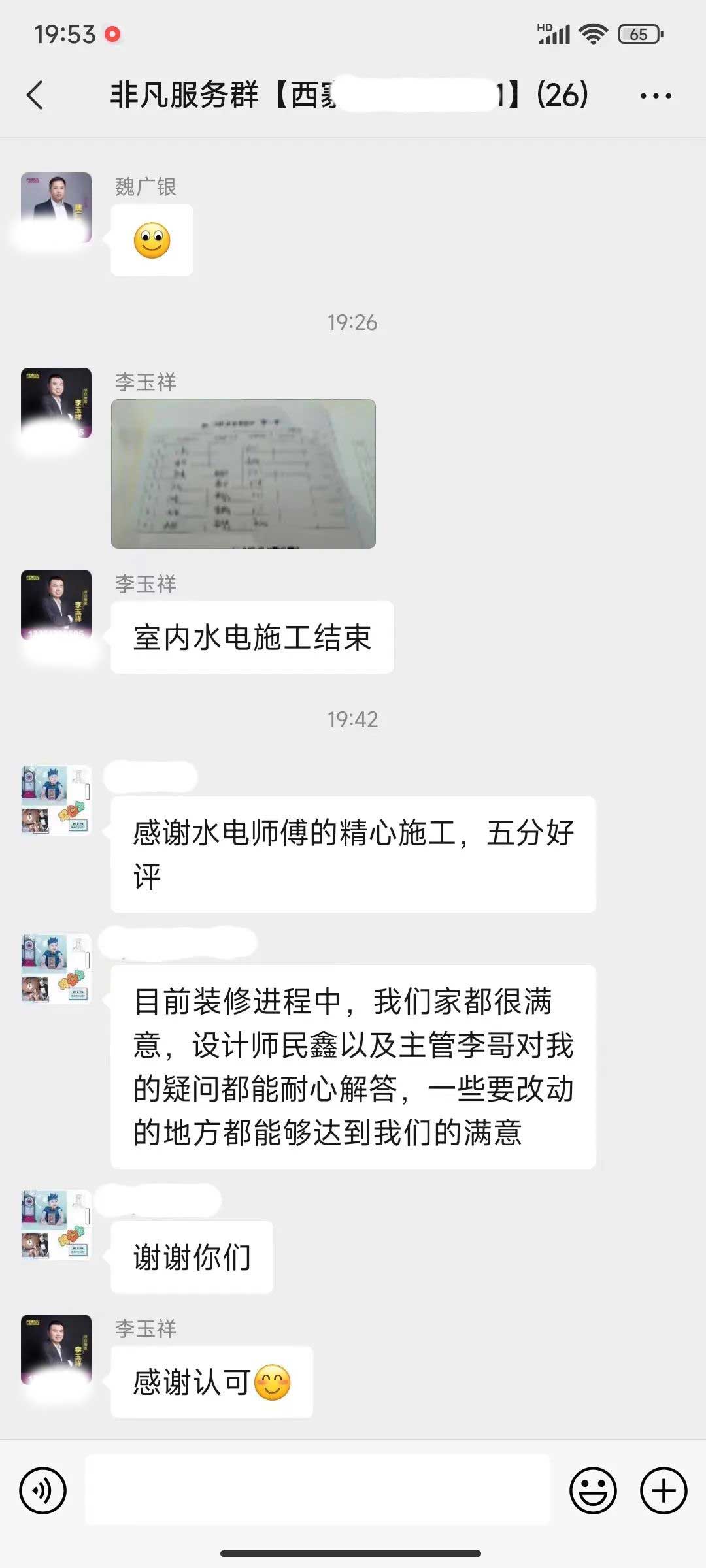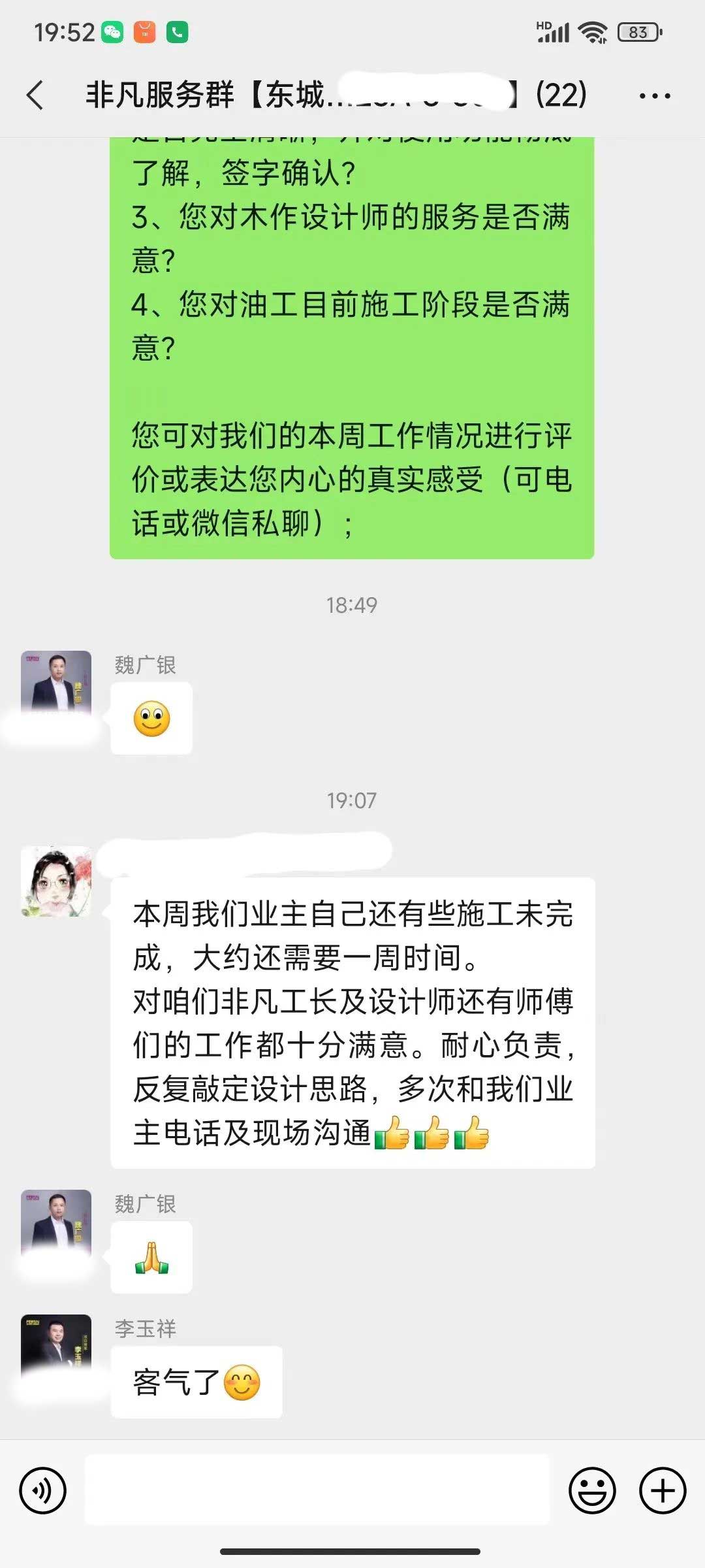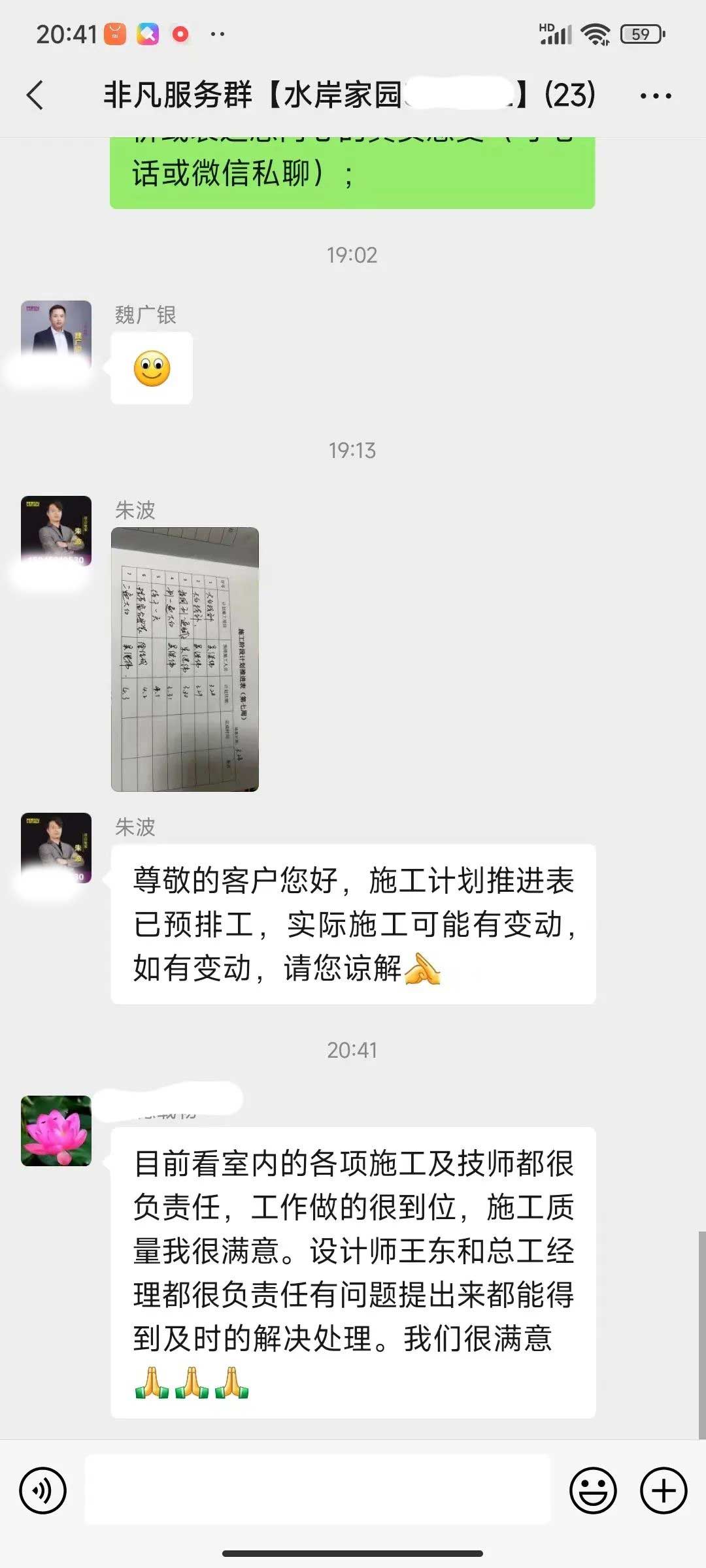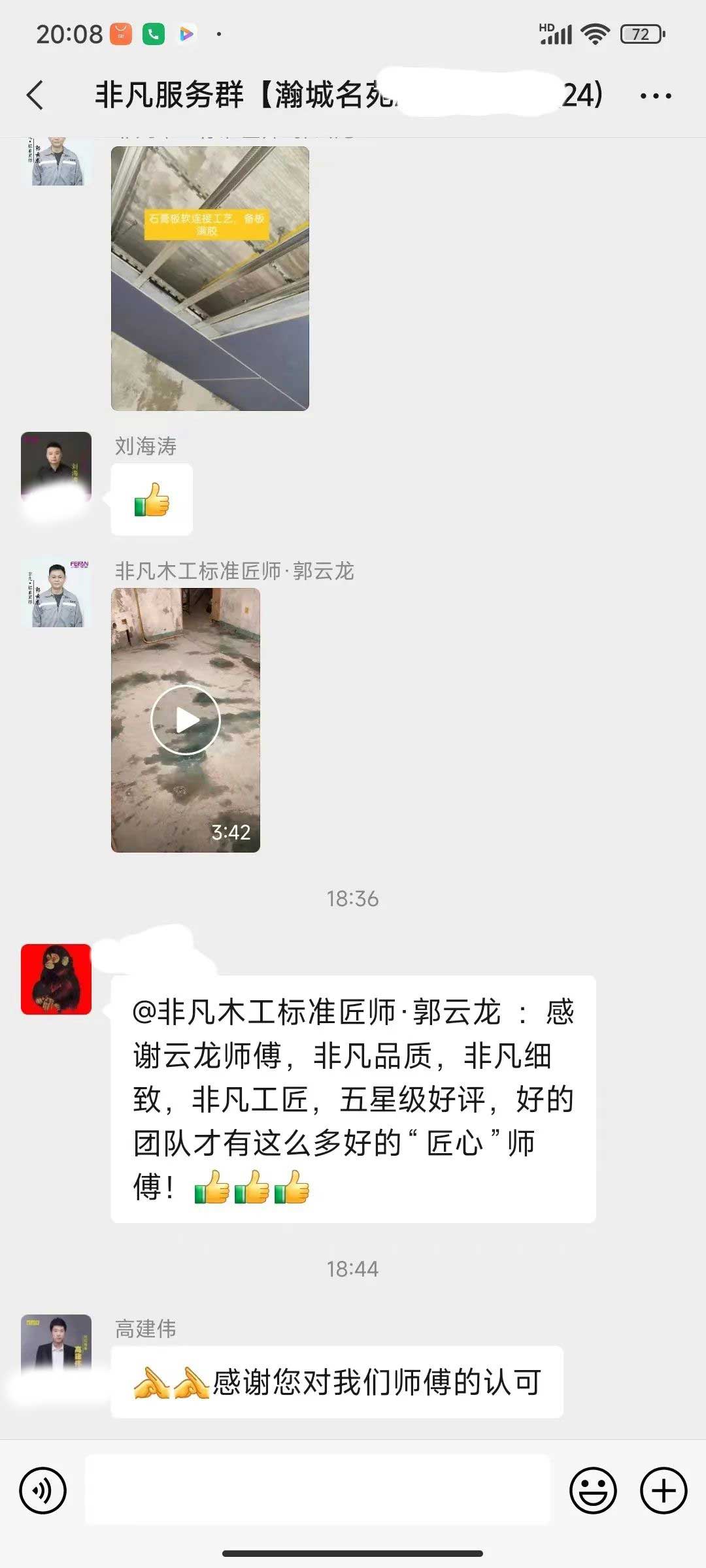 工人師傅收到的好評.