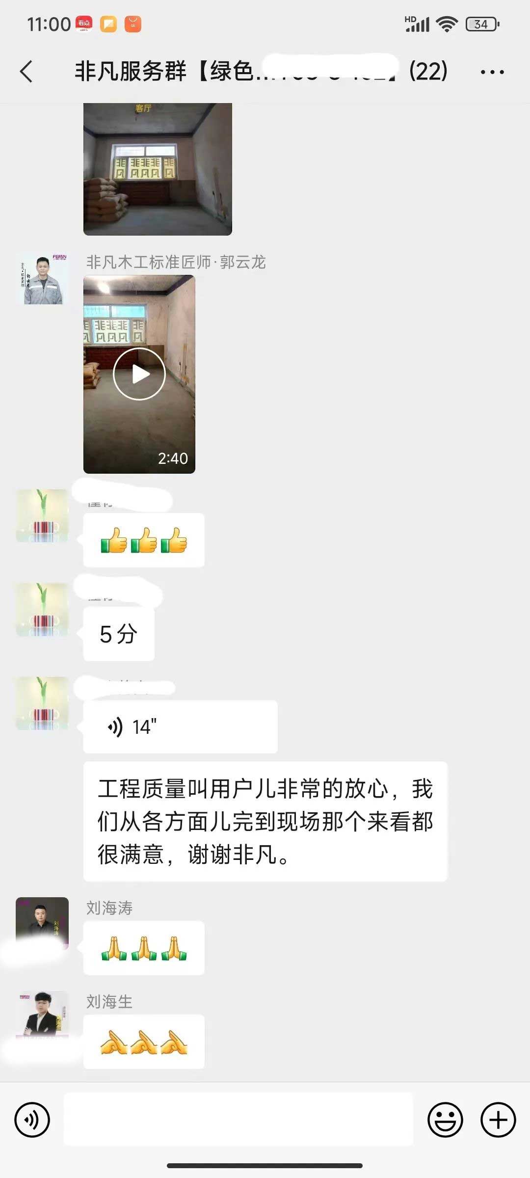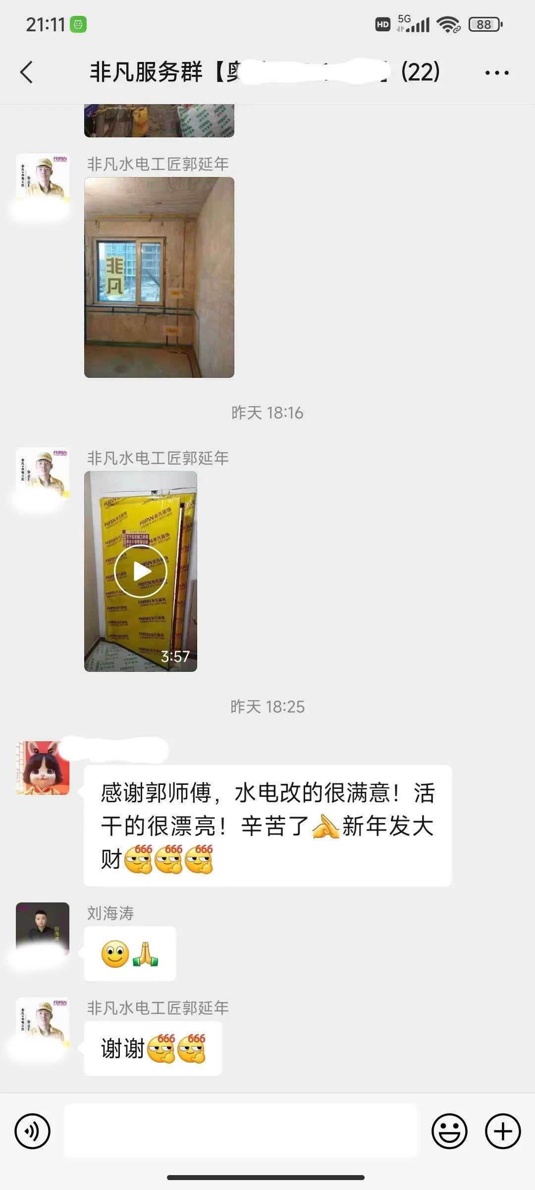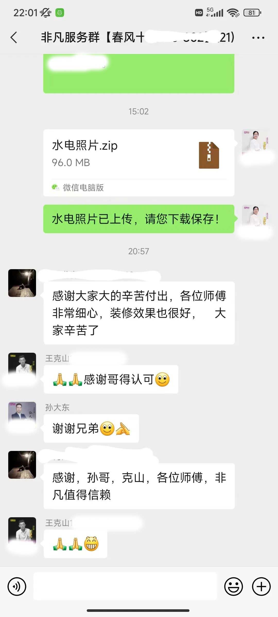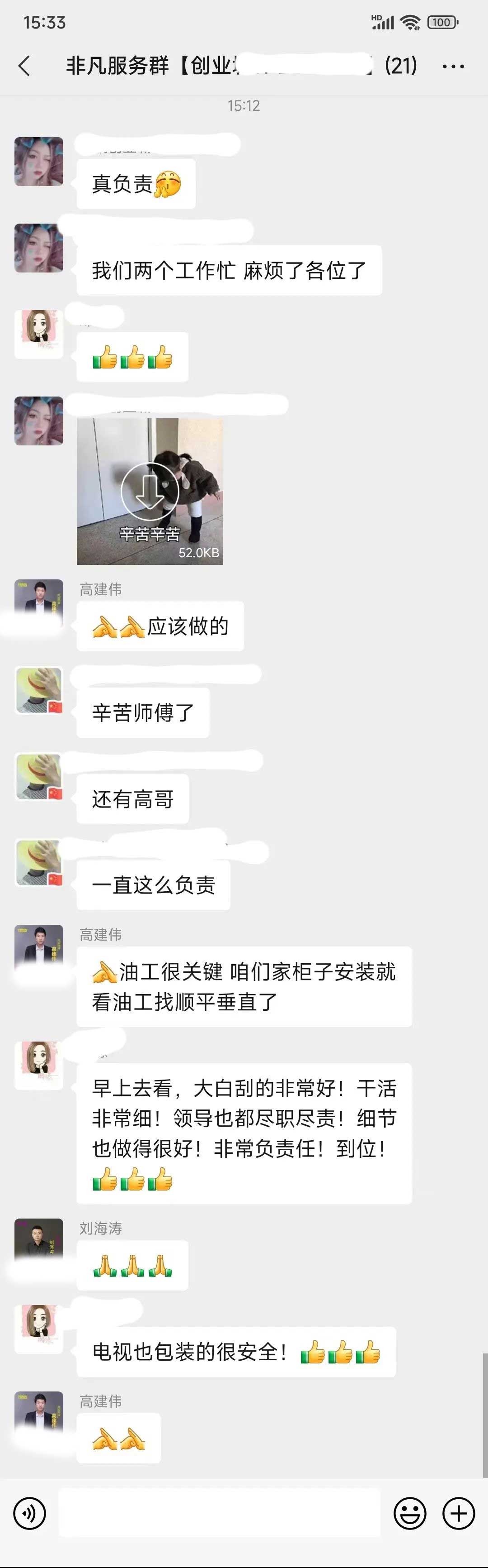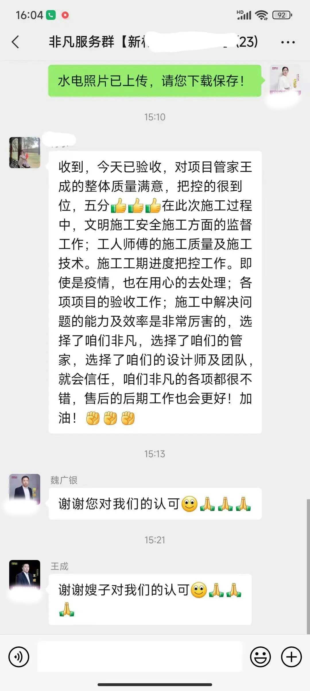 工人師傅收到的好評.