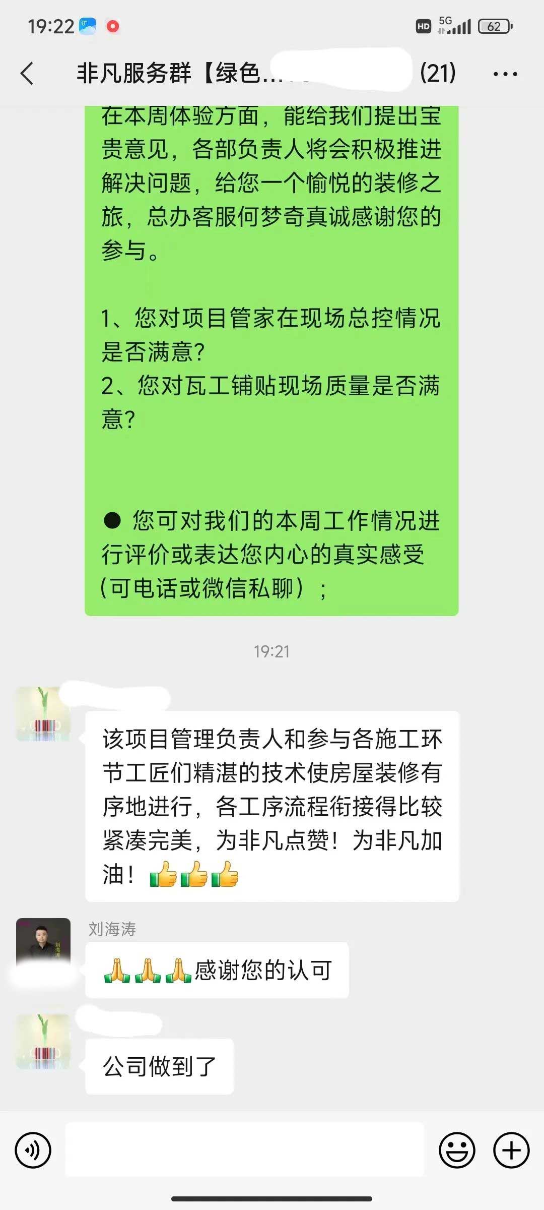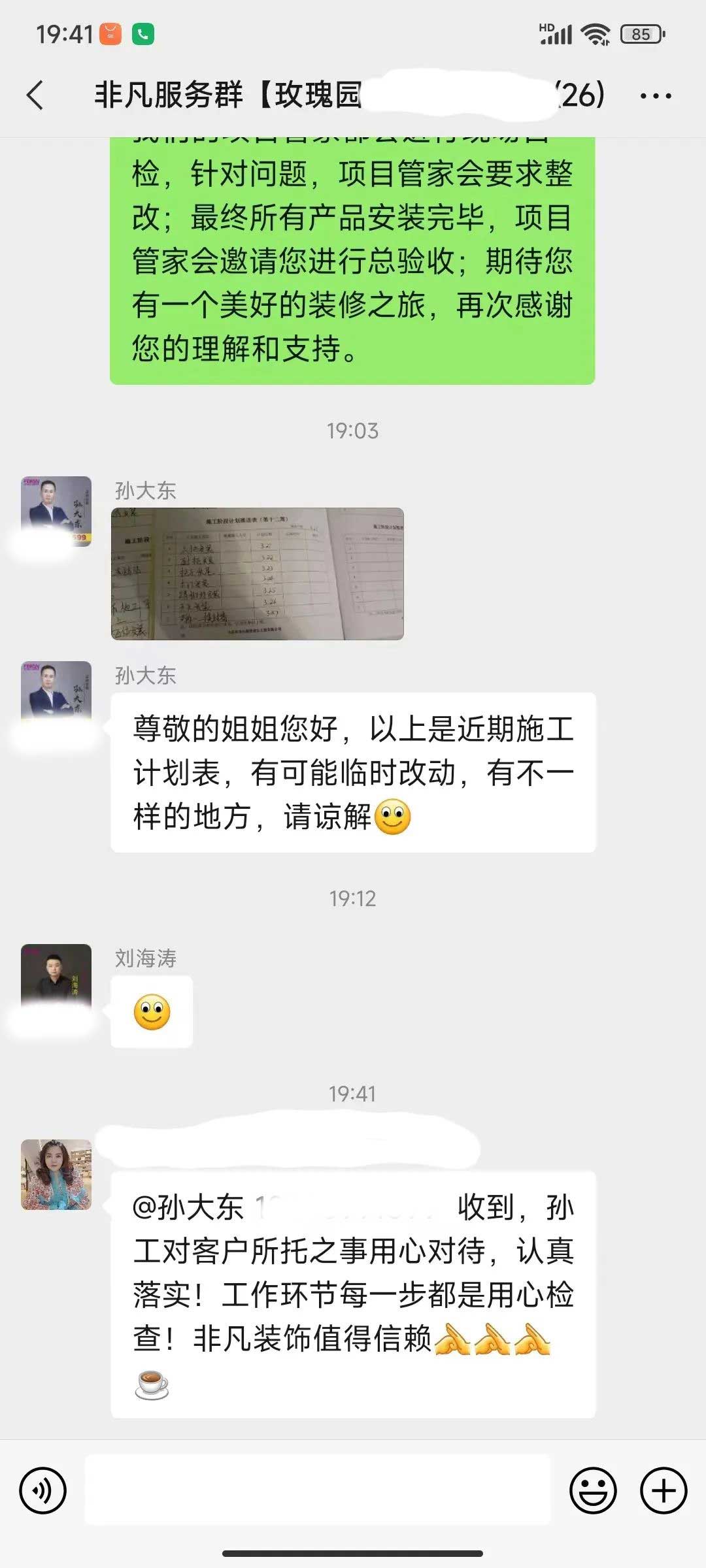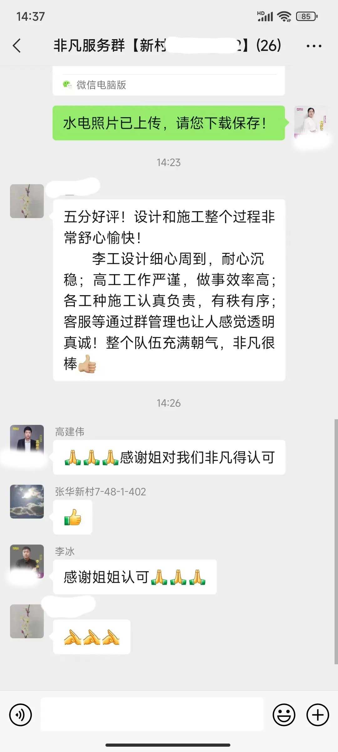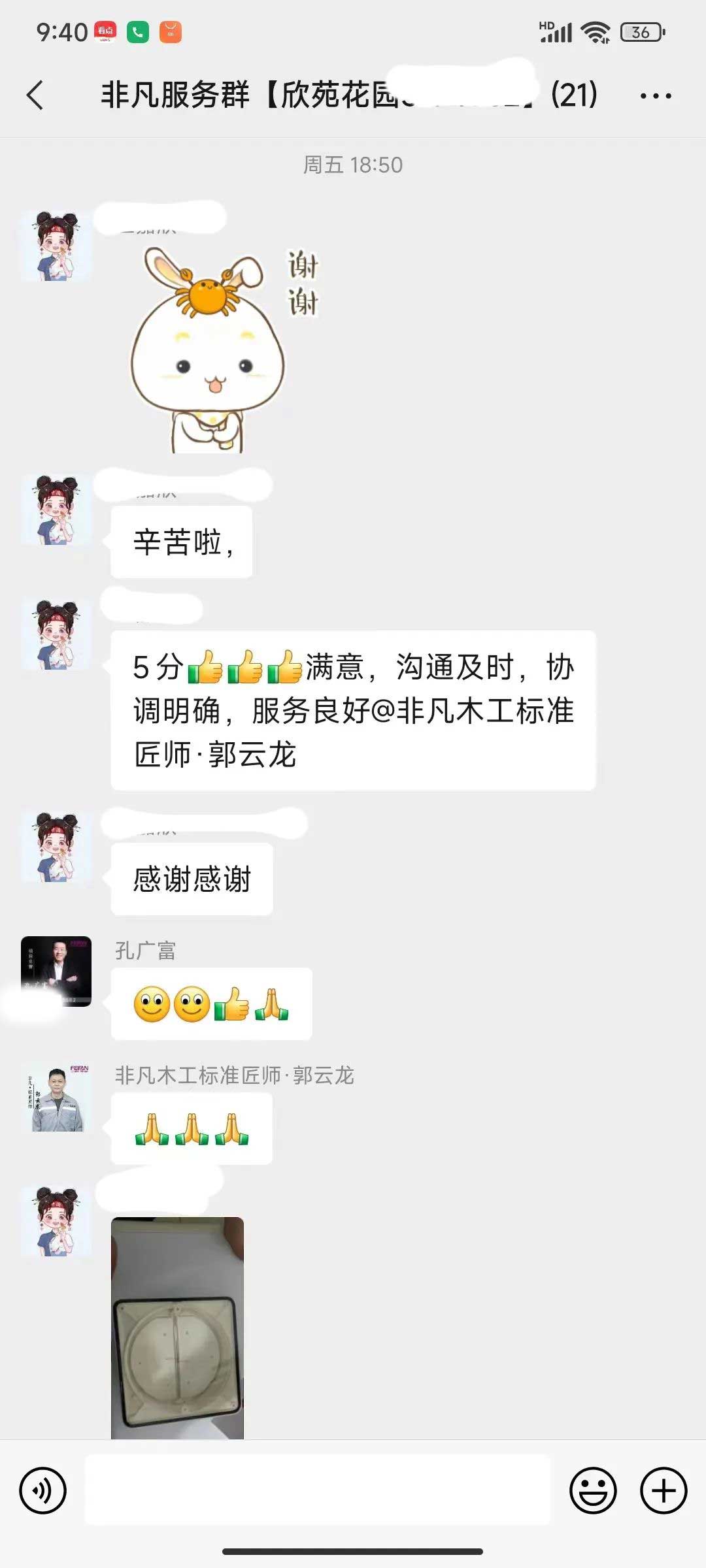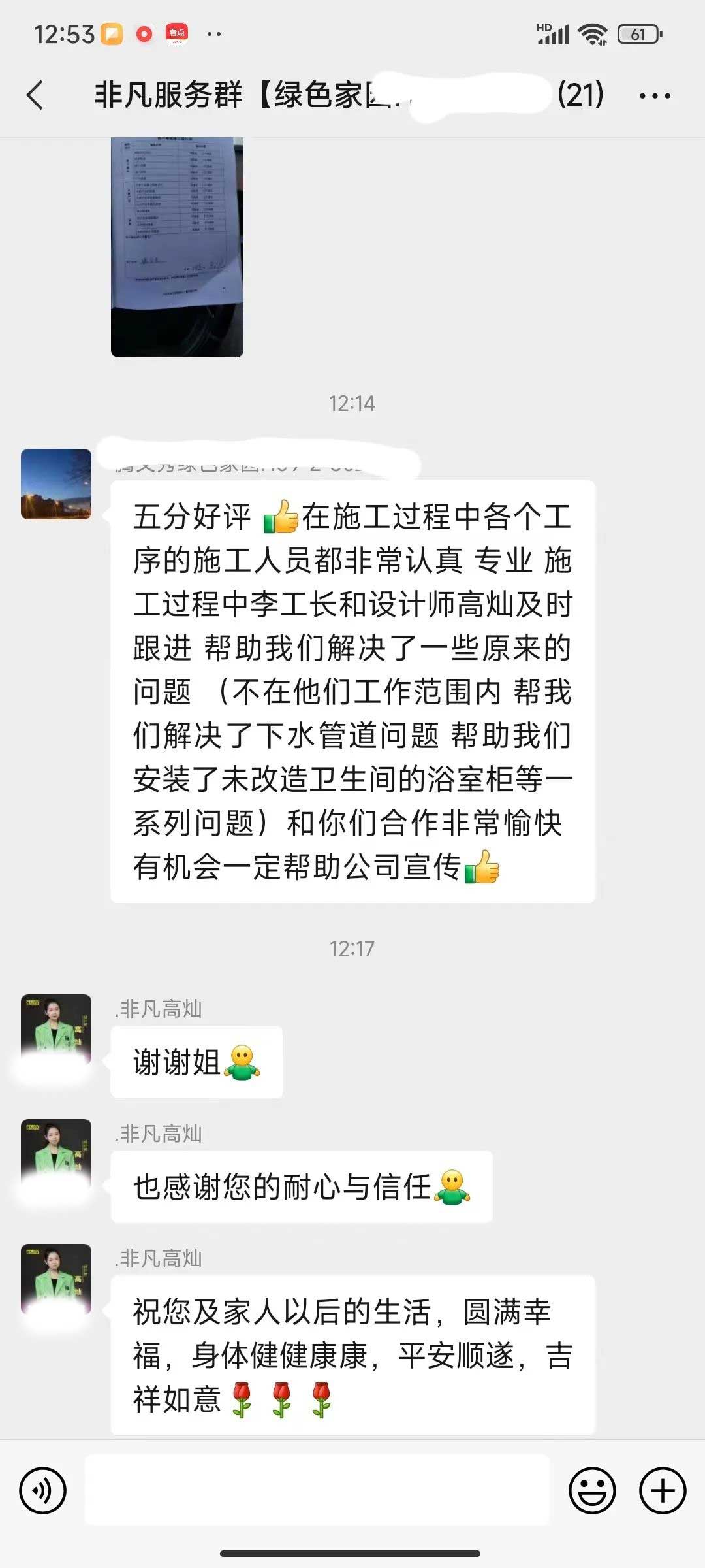 工人師傅收到的好評.