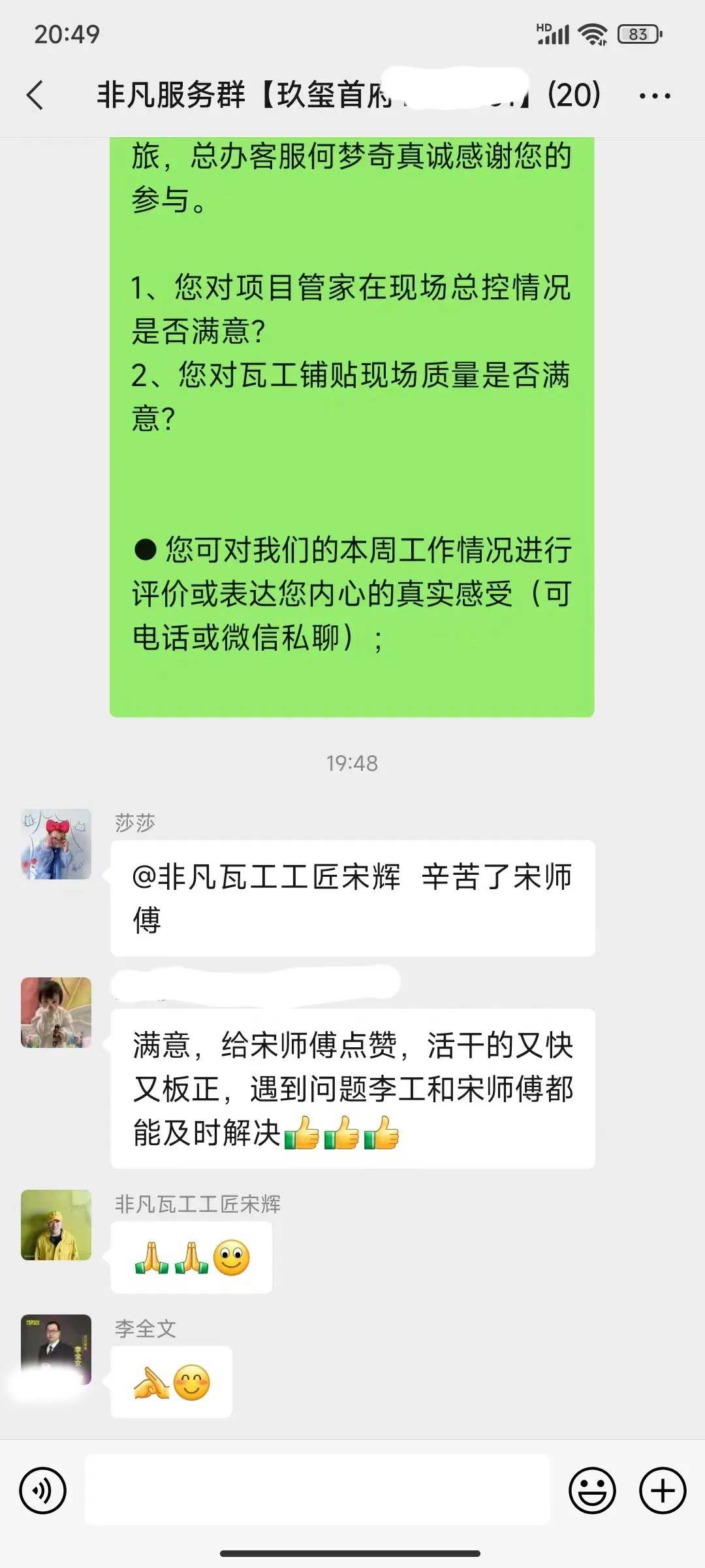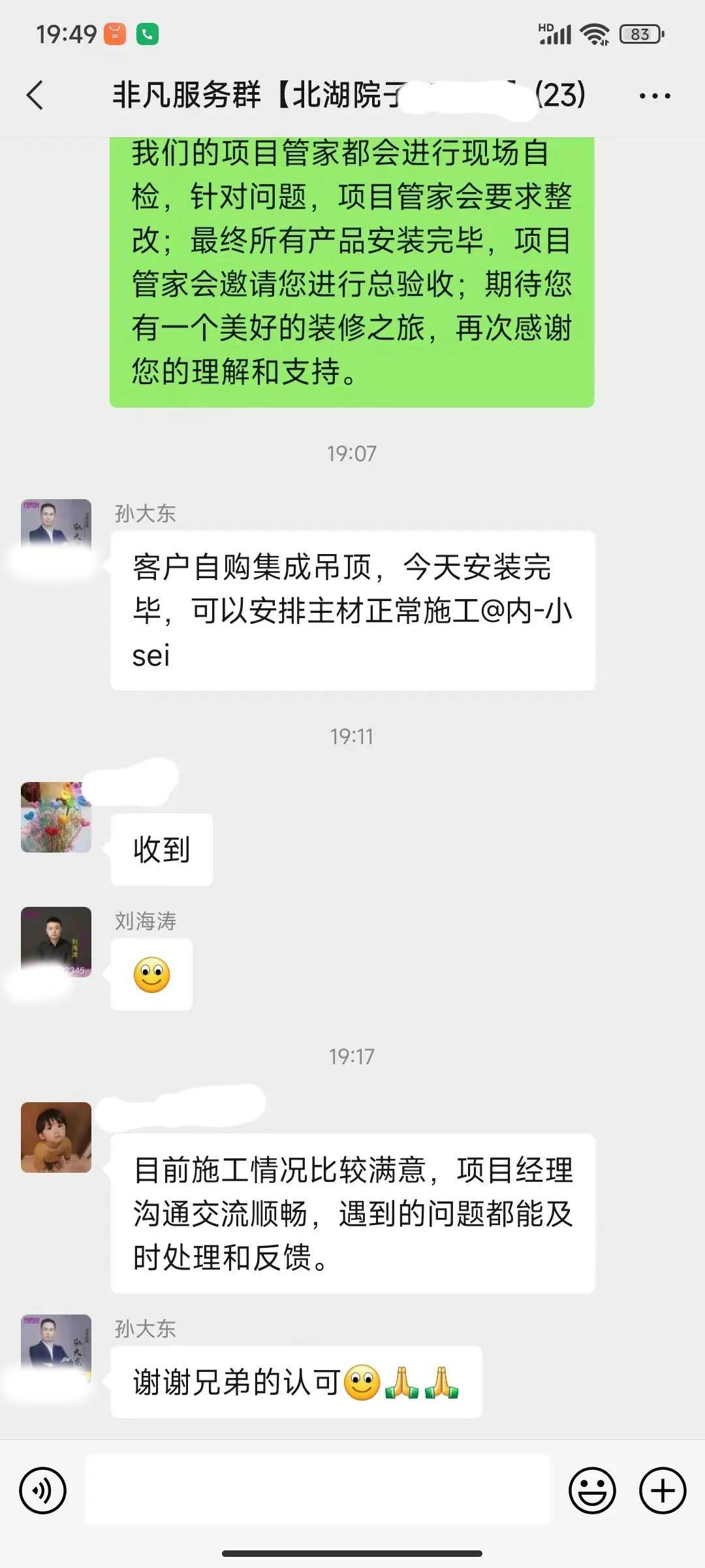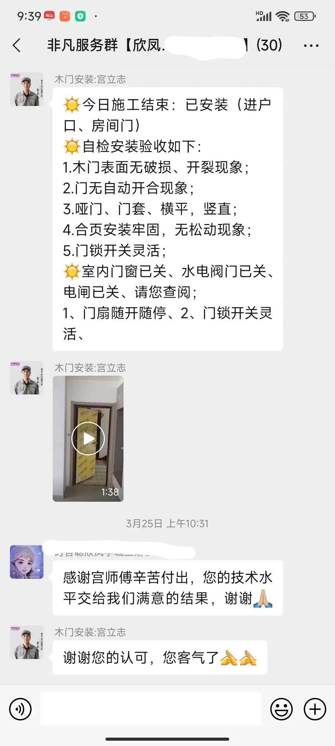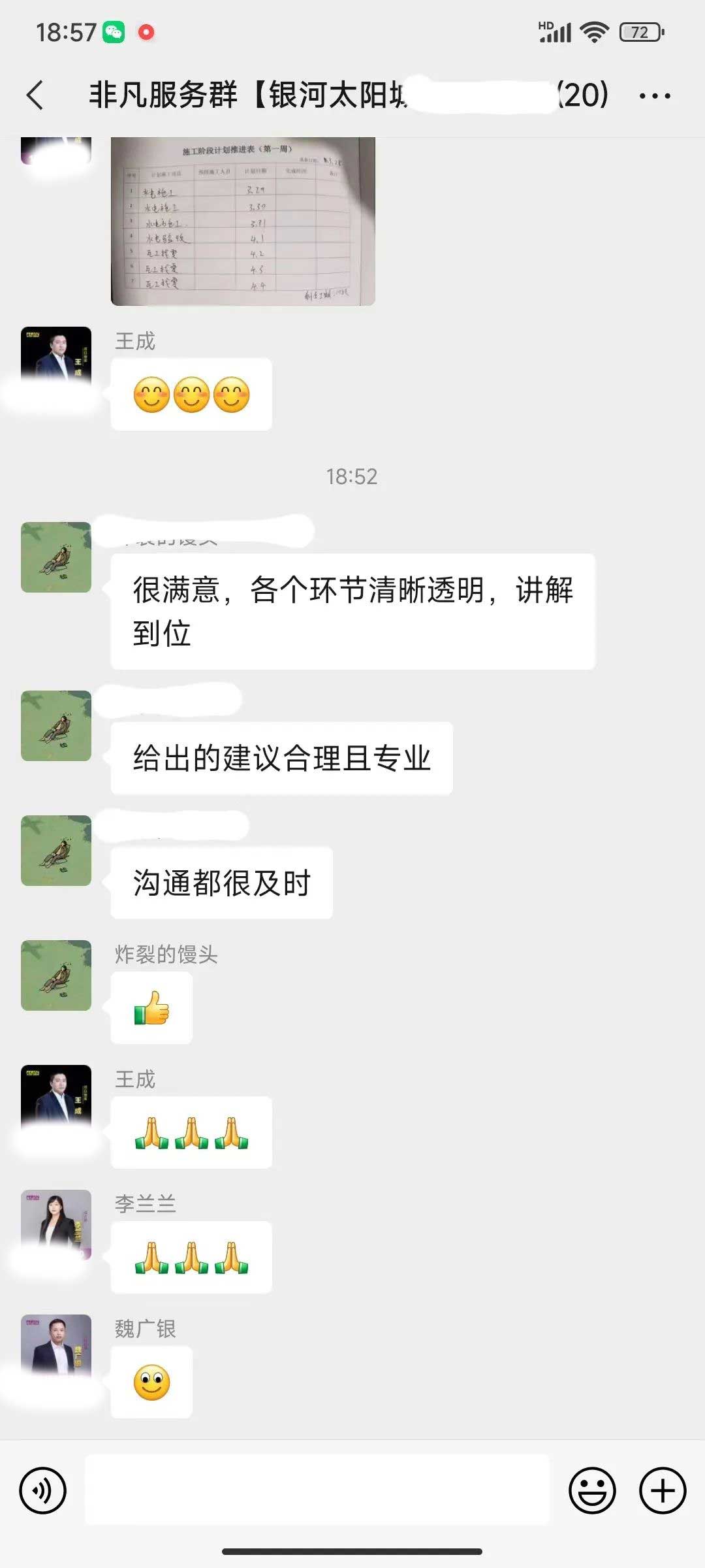 工人師傅收到的好評.