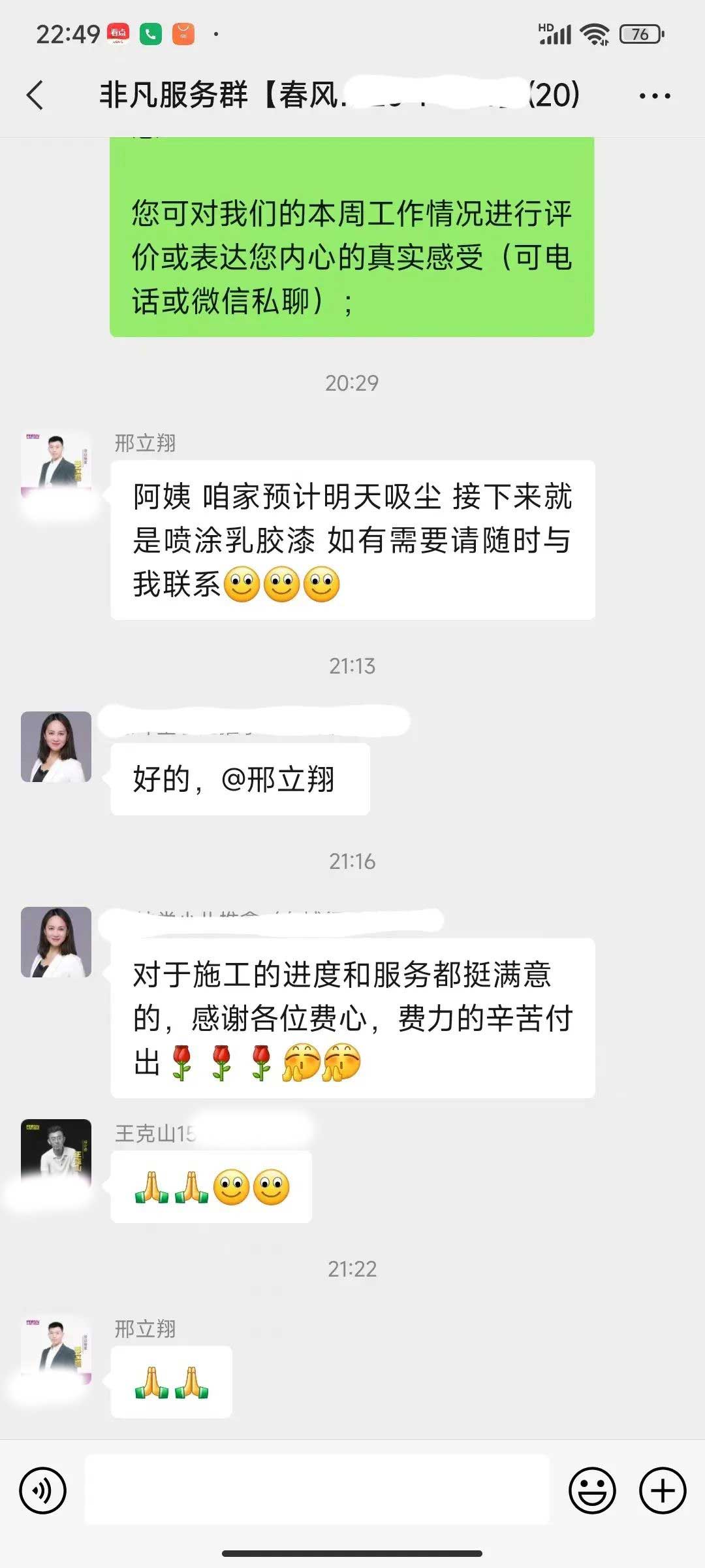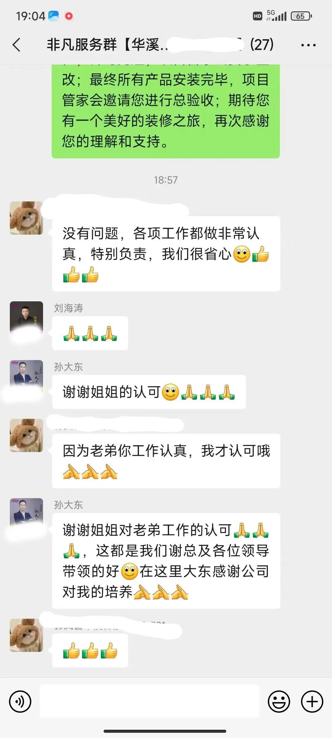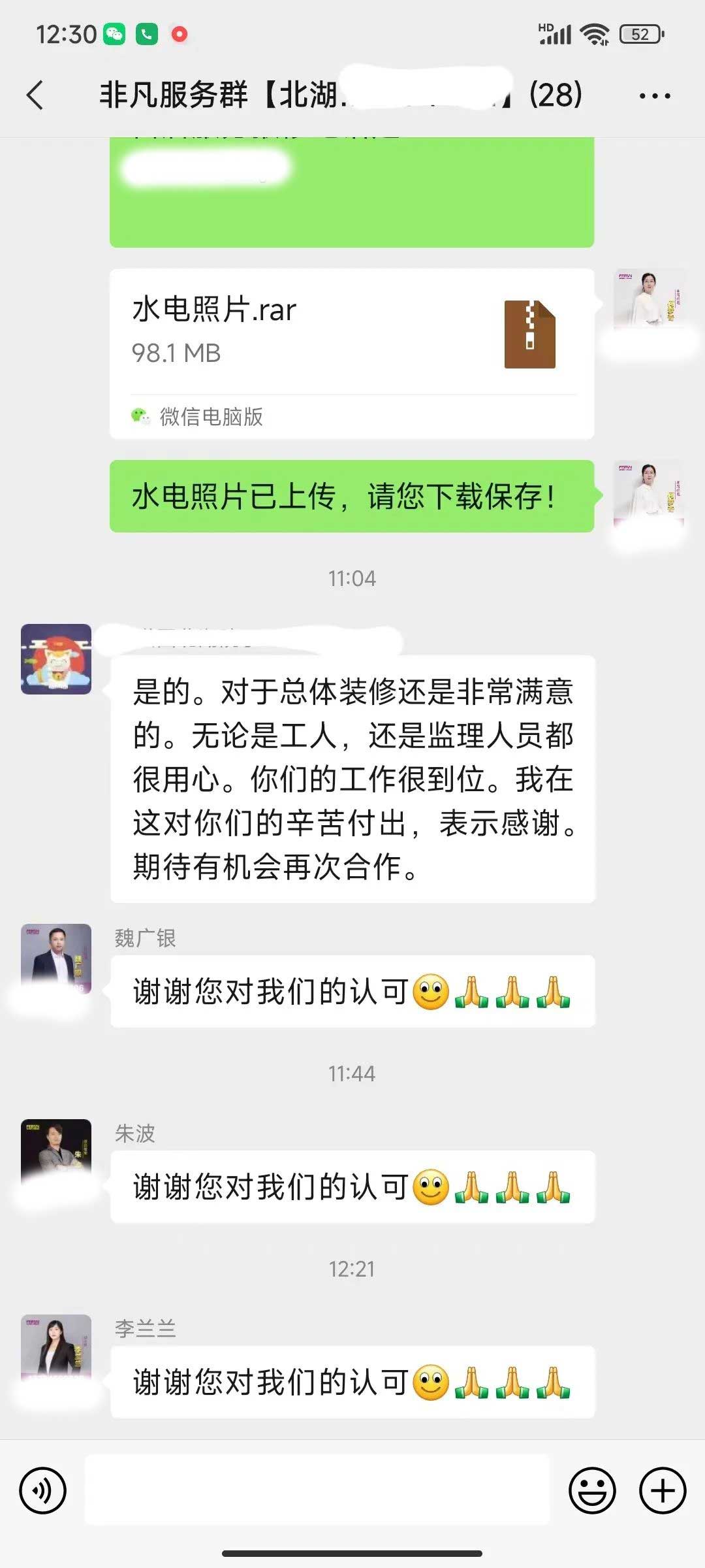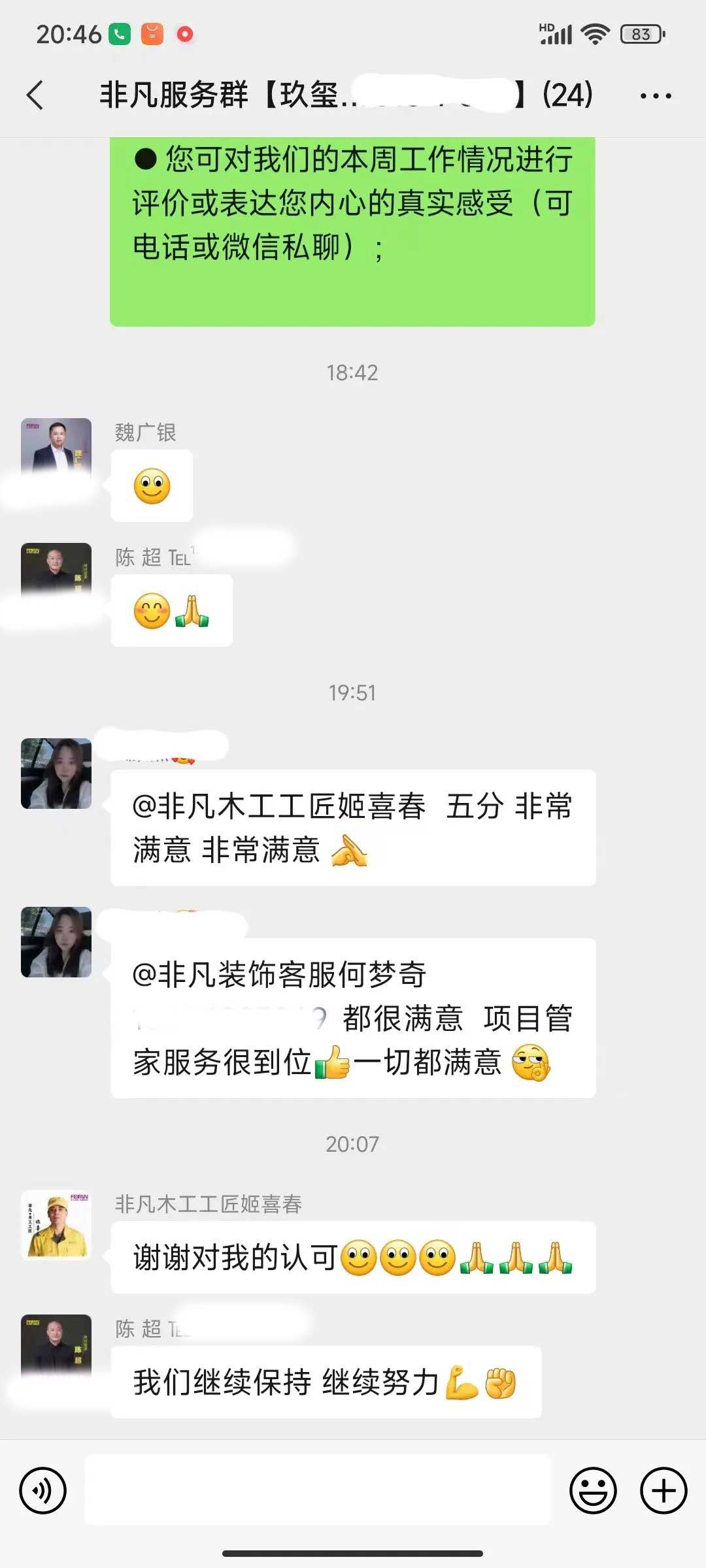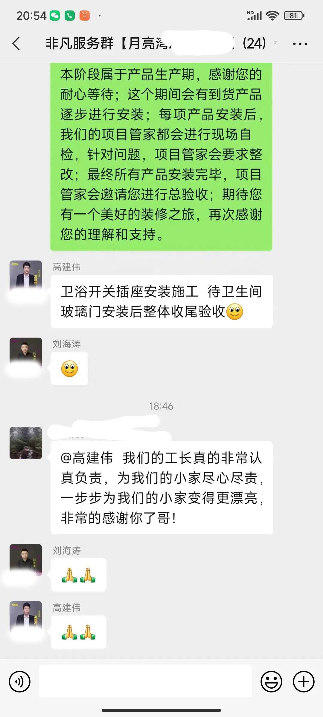 工人師傅收到的好評.