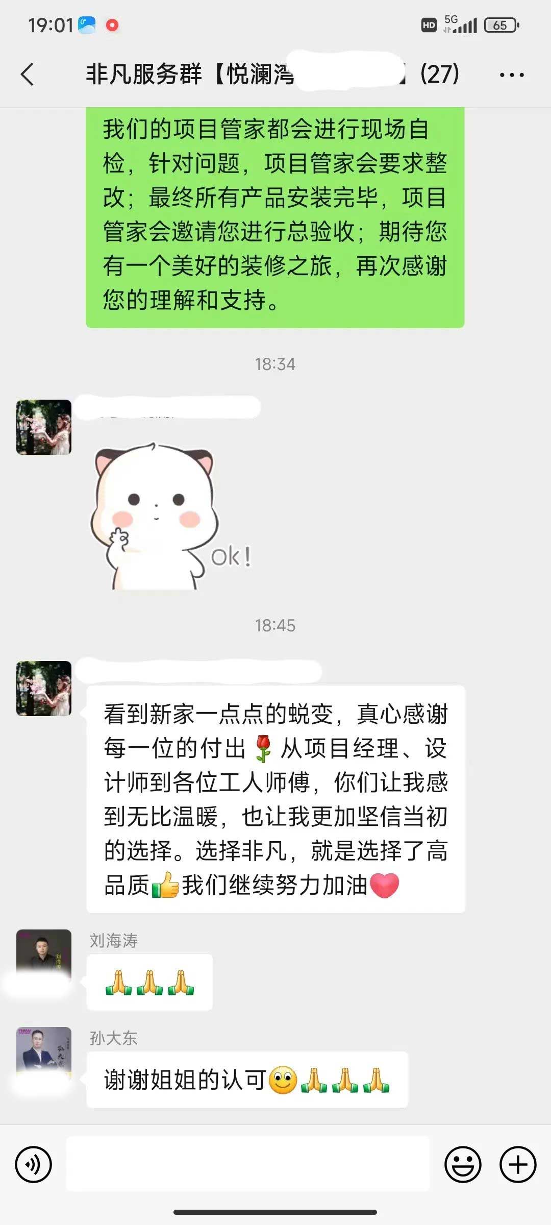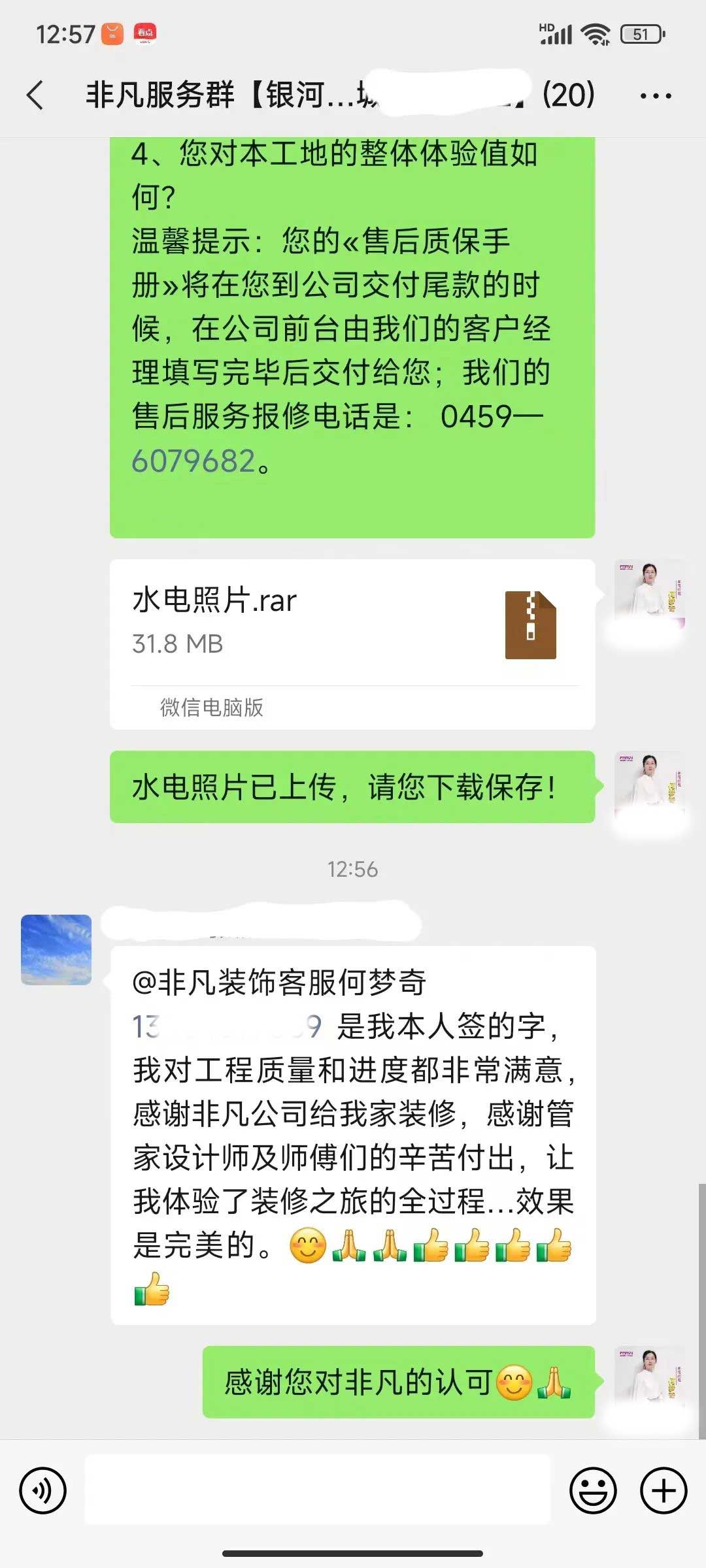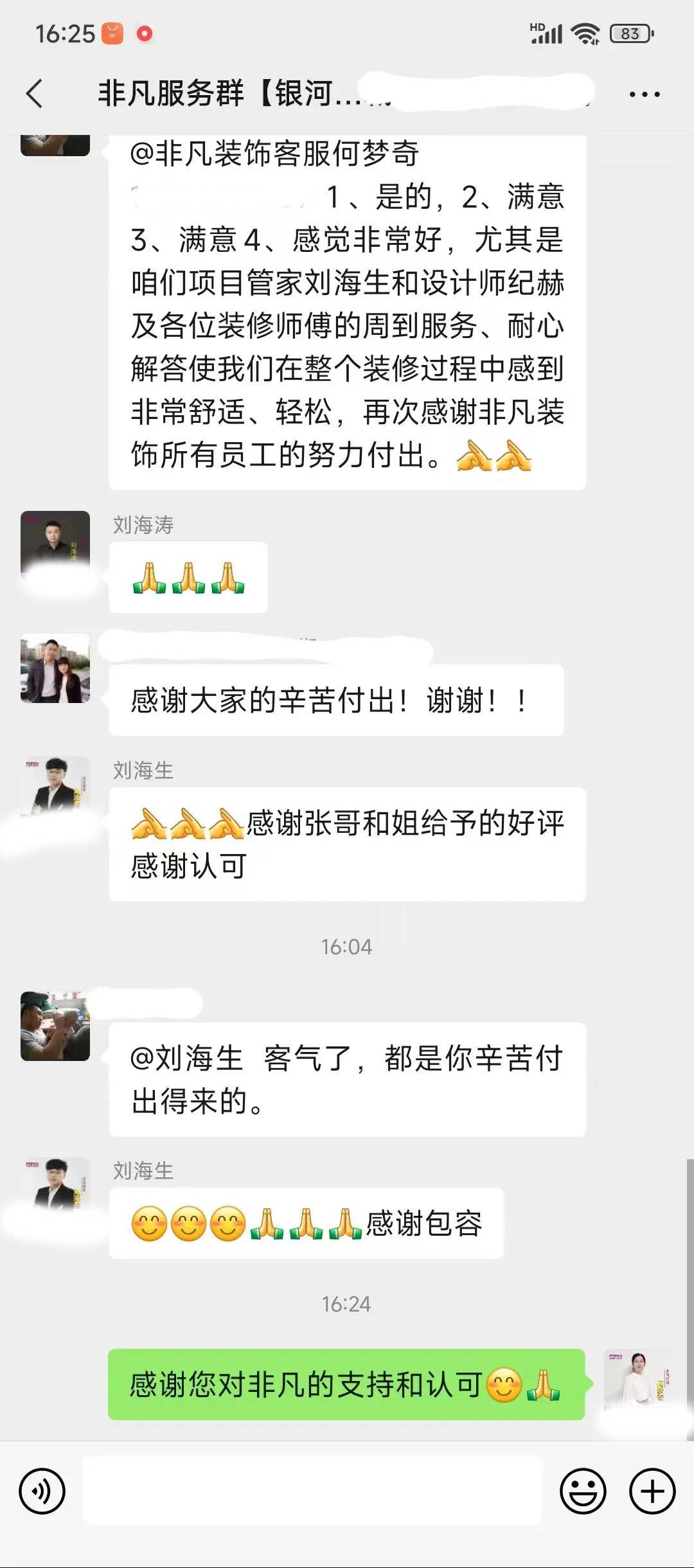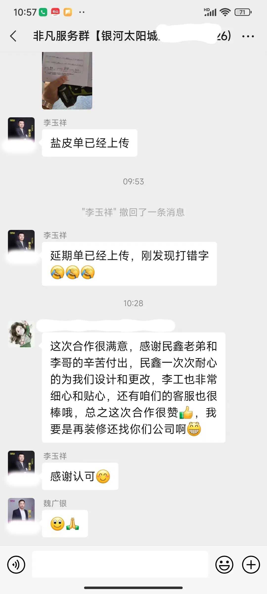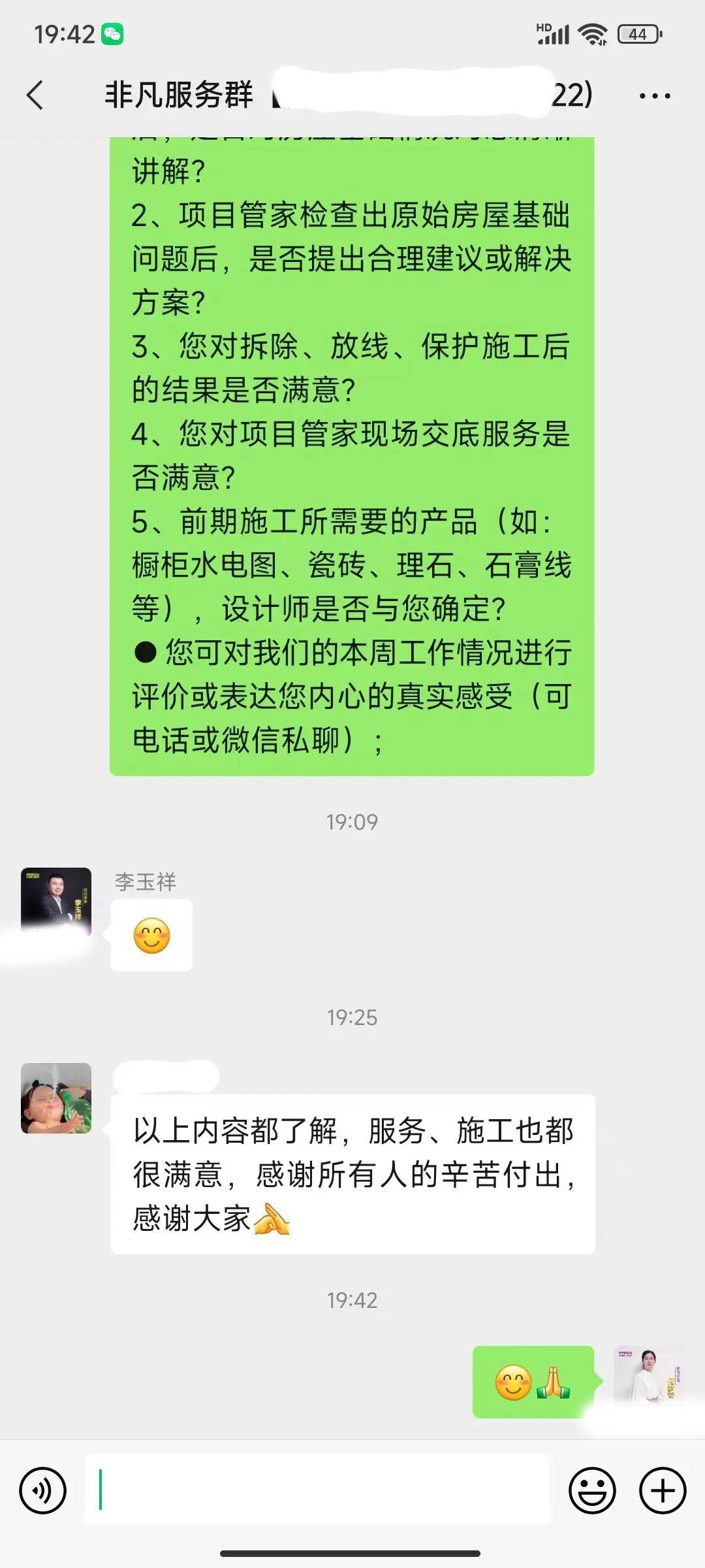 工人師傅收到的好評.