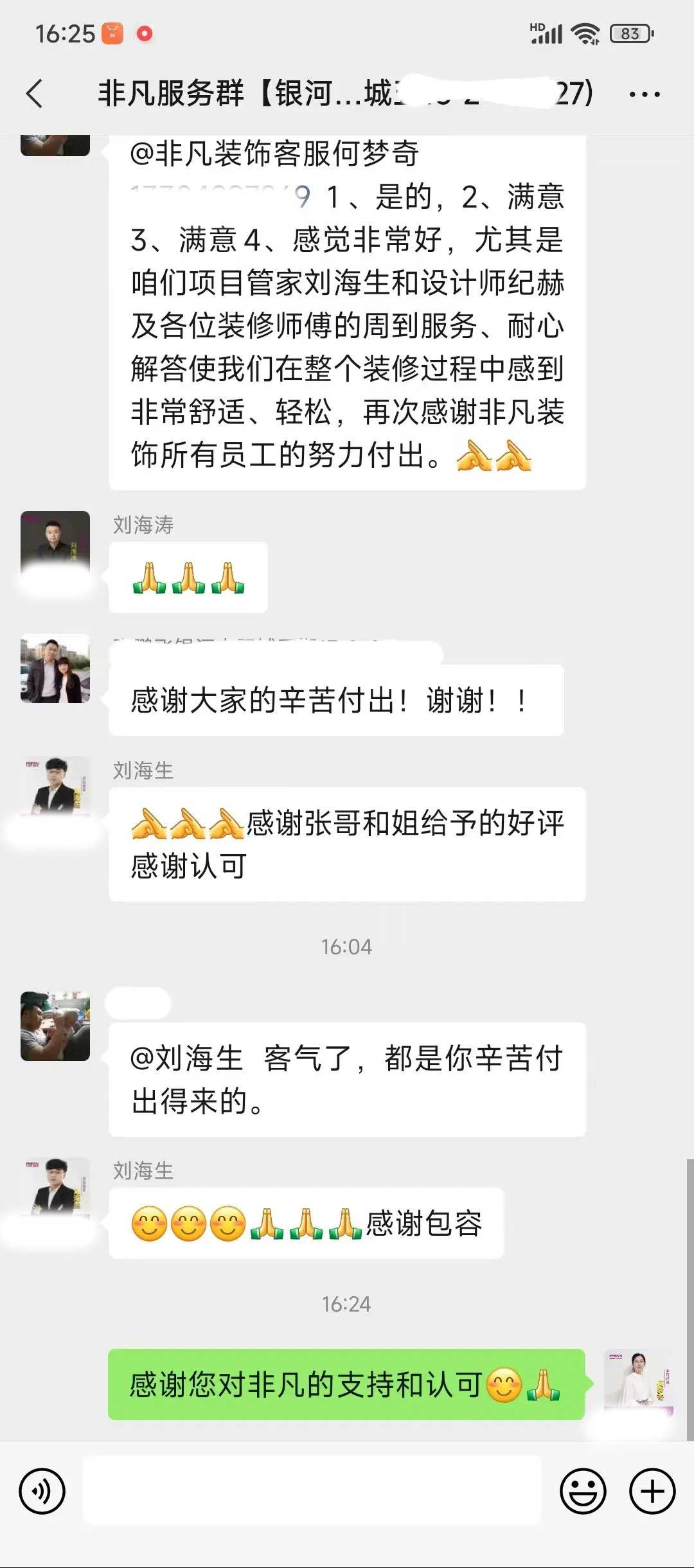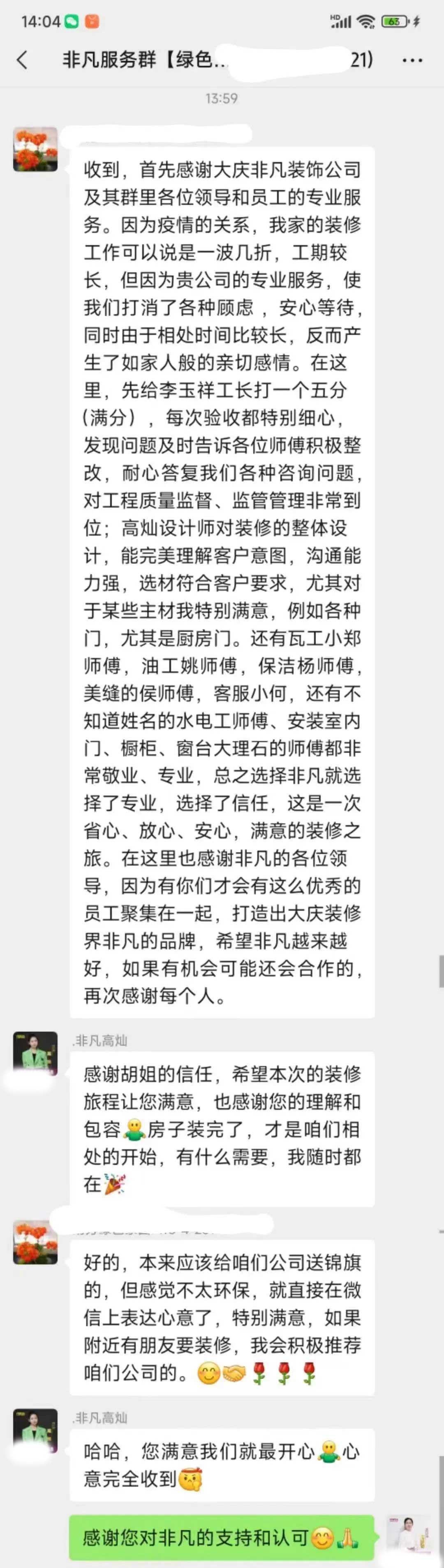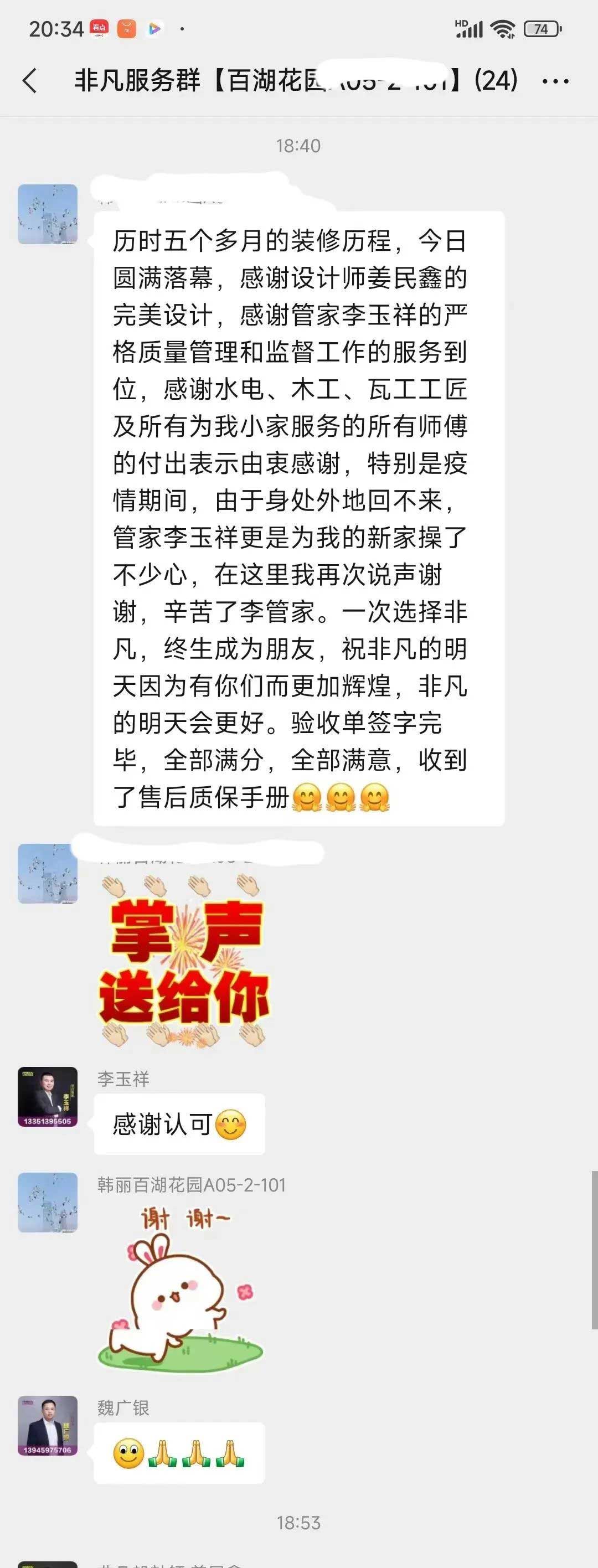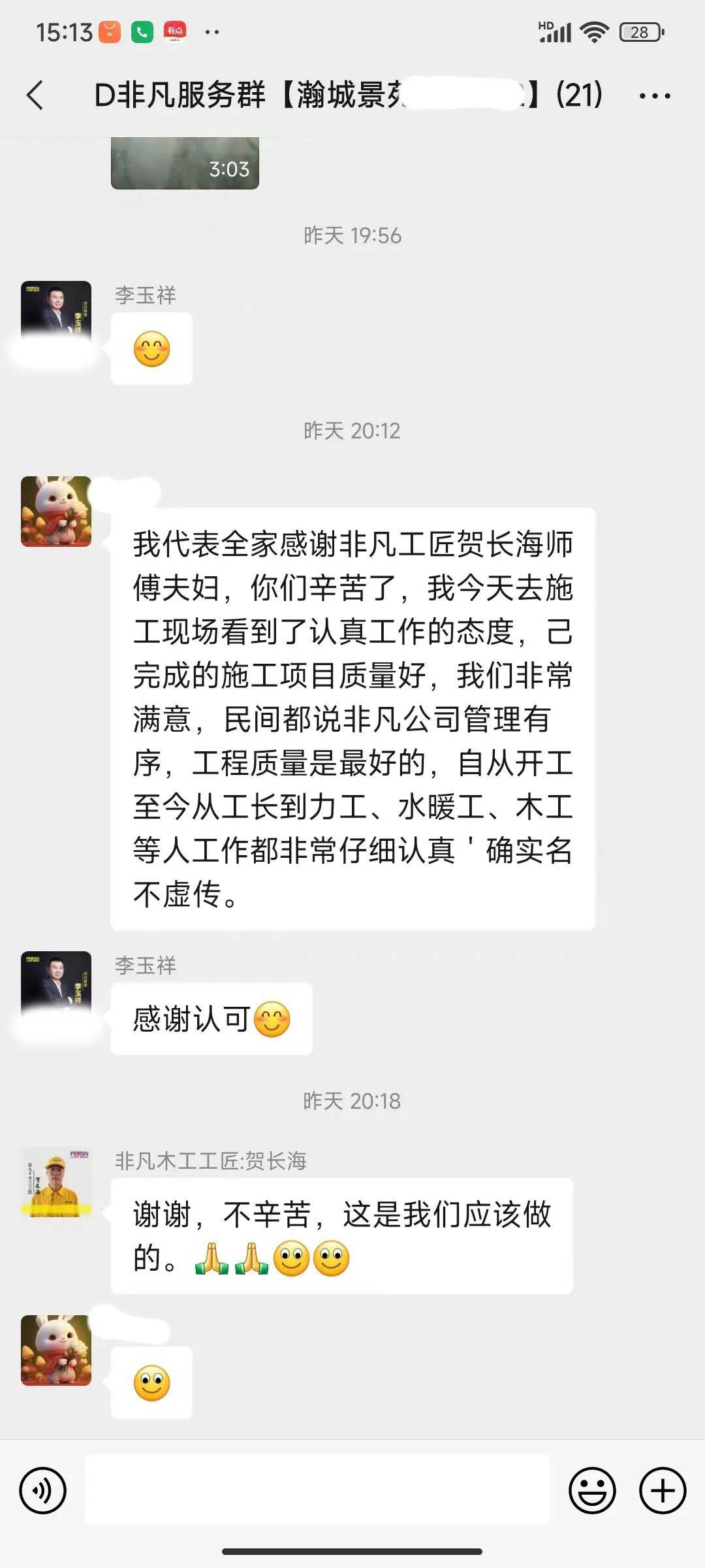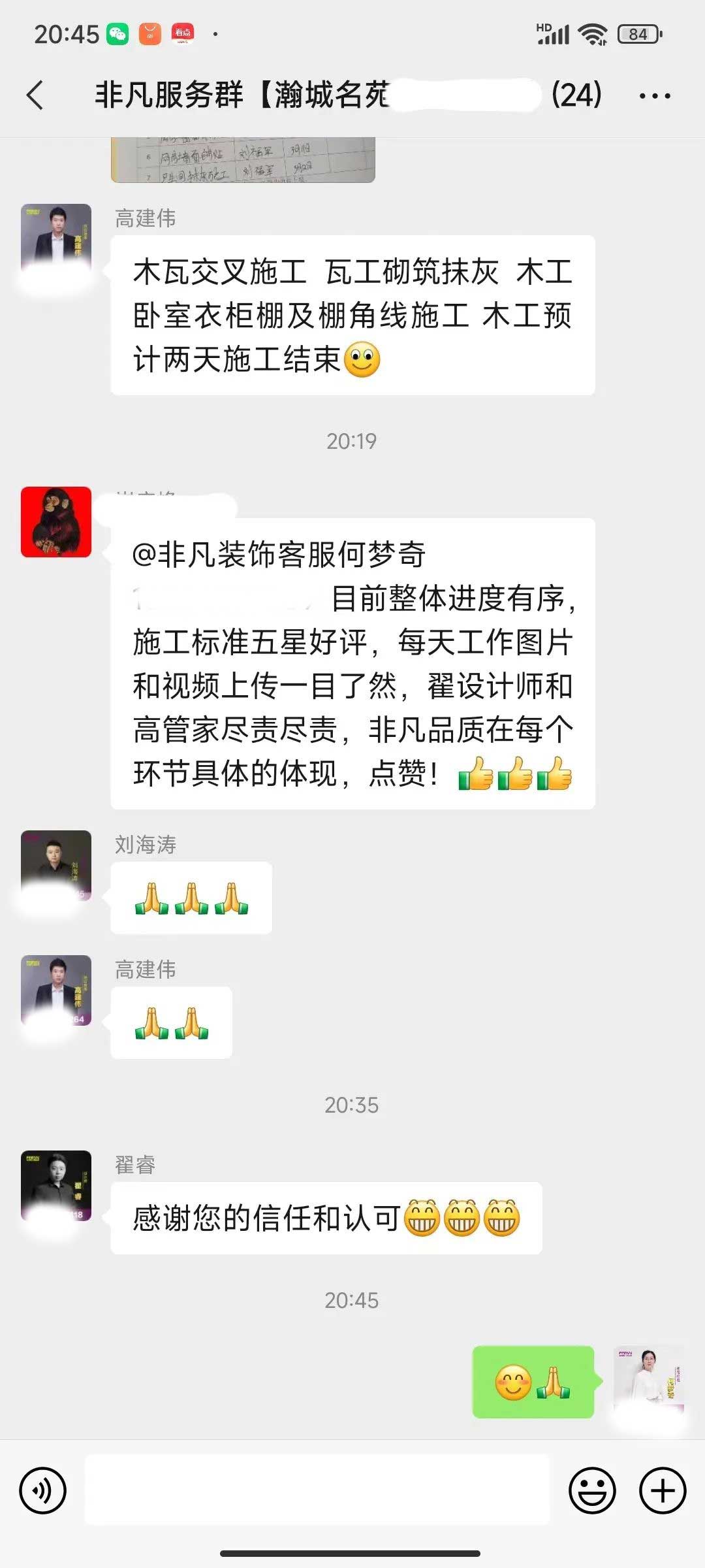 工人師傅收到的好評.