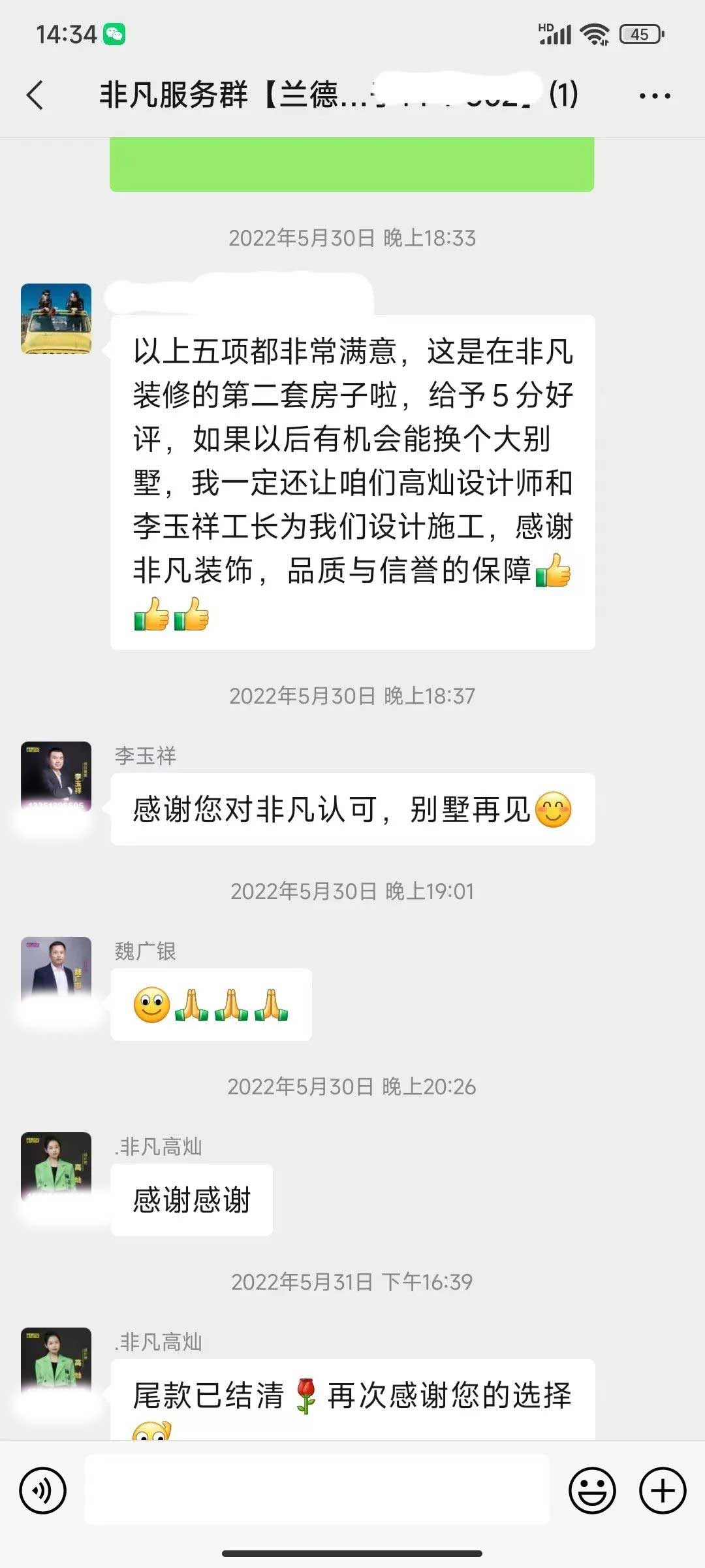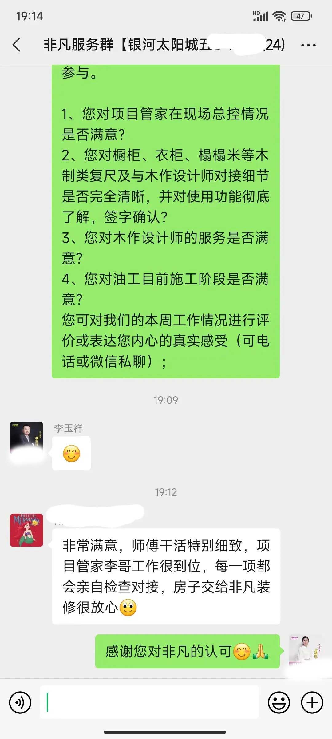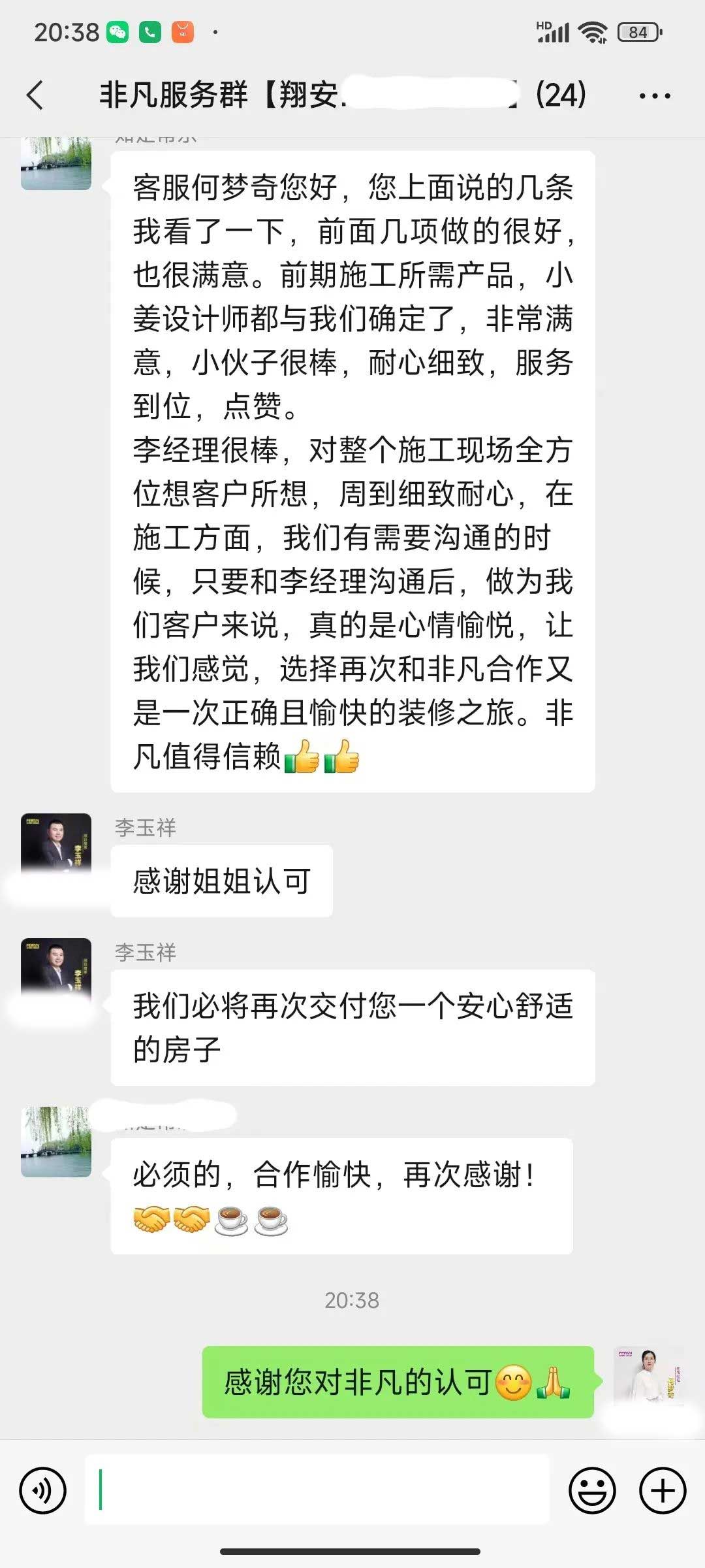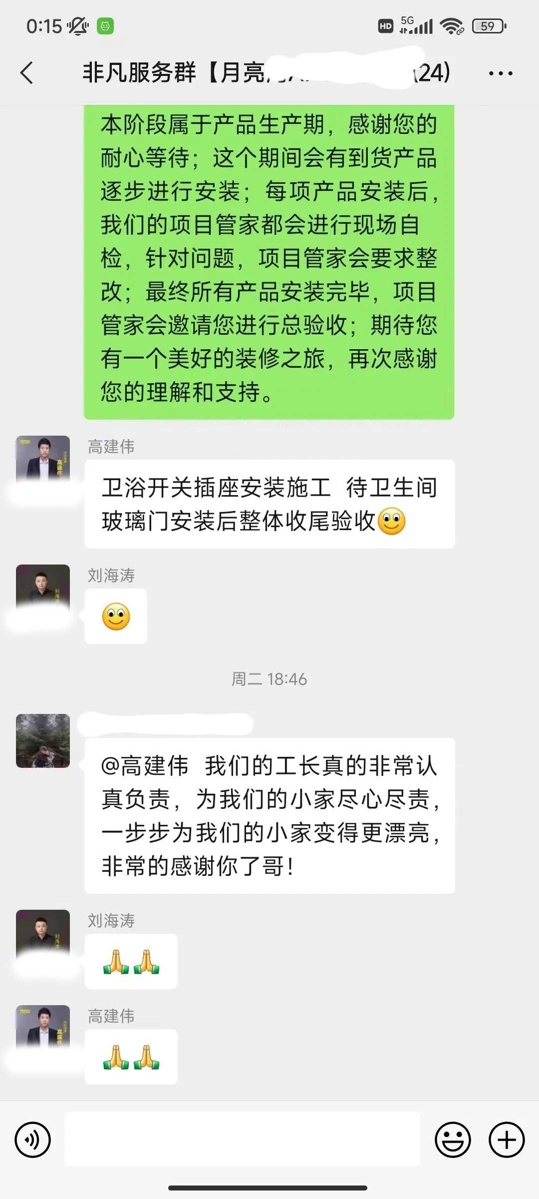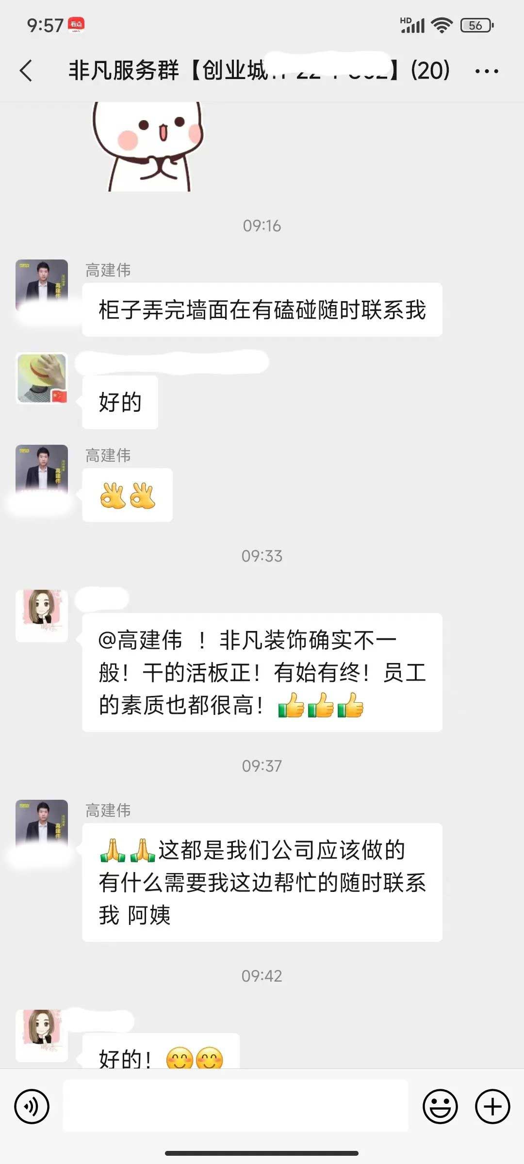 工人師傅收到的好評.