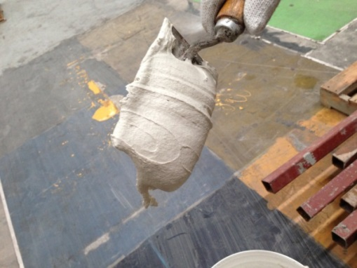 拌制好的膠漿用刮刀挑起時呈蠕動的漿狀;
