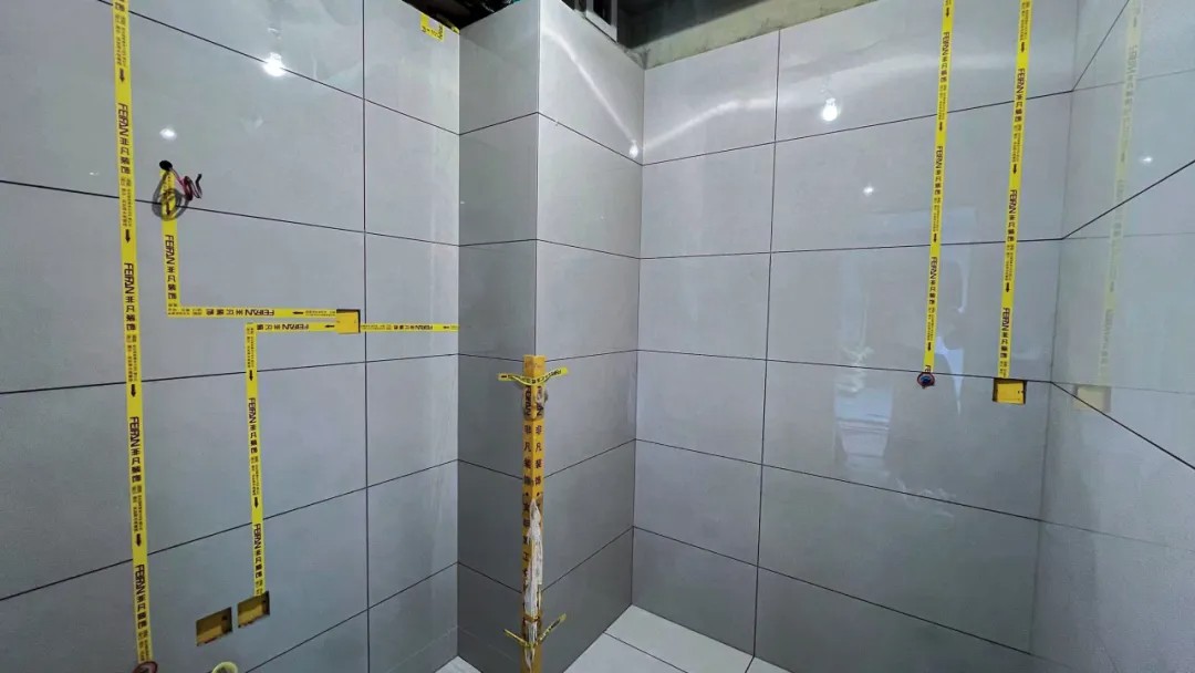 特別是非凡升級了全瓷磚上墻的施工工藝后,由瓷磚膠代替了傳統(tǒng)的水泥砂漿,薄貼工藝要求師傅把墻先規(guī)方找平之后再用瓷磚膠去粘貼,這樣貼出來效果更好,但同時(shí)對師傅們來說也是一項(xiàng)考驗(yàn)。