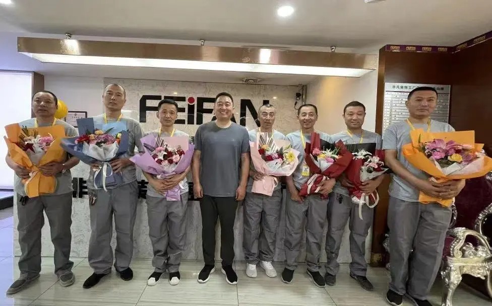 賀立新師傅是非凡裝飾的一位標(biāo)準(zhǔn)匠師,在去年的6月18日光榮轉(zhuǎn)正,換上了灰色的工裝,如今在非凡也已經(jīng)是第六個(gè)年頭。