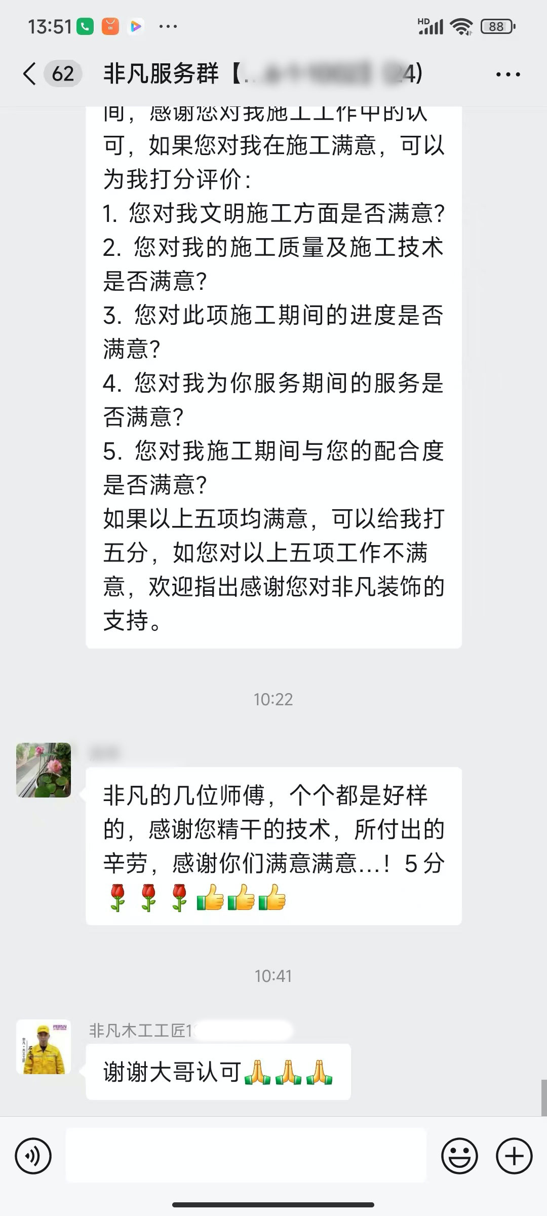 在裝修的漫漫長路上,每一個(gè)家的蛻變都傾注了客戶的信任與期待,也承載著我們的心血與執(zhí)著。作為一家裝修公司,客戶的好評(píng)于我們而言,猶如璀璨星辰照亮前行的方向,是激勵(lì),更是責(zé)任。回首過往,每個(gè)月都能幸運(yùn)地收獲客戶滿滿的贊譽(yù),那些或長或短、或質(zhì)樸或深情的話語,一字一句都鐫刻在我們心間,成為珍貴的勛章。