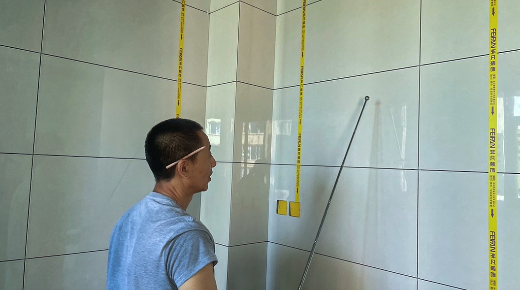 不僅公司對于工地有要求,趙師傅自己也對工藝上有著嚴格的標準,每一面墻都會主動進行檢查,看是否有空鼓情況。“沒有規(guī)矩不成方圓。”嫂子在一旁說道。