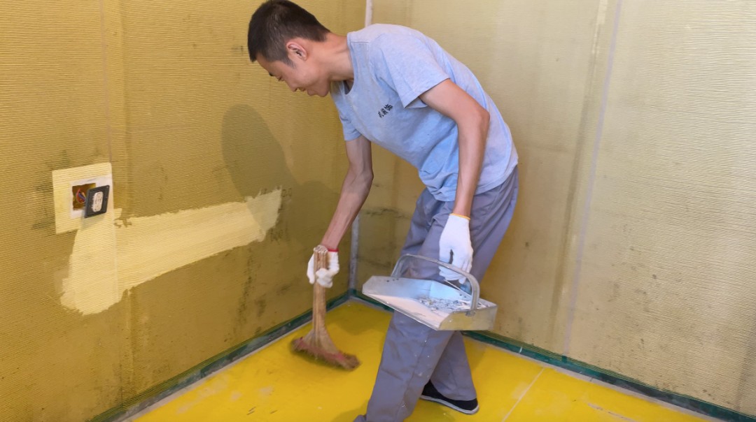 掃把永遠(yuǎn)在楊師傅一伸手就能夠到的地方,雖然油工師傅作業(yè)的時(shí)候是容易產(chǎn)生粉塵的,但是楊師傅在施工的時(shí)候一邊干活一邊清理,不一會(huì)兒就見(jiàn)他拿起來(lái)掃把開(kāi)始維護(hù)工地環(huán)境,除此之外,施工區(qū)域的材料擺放井井有條。