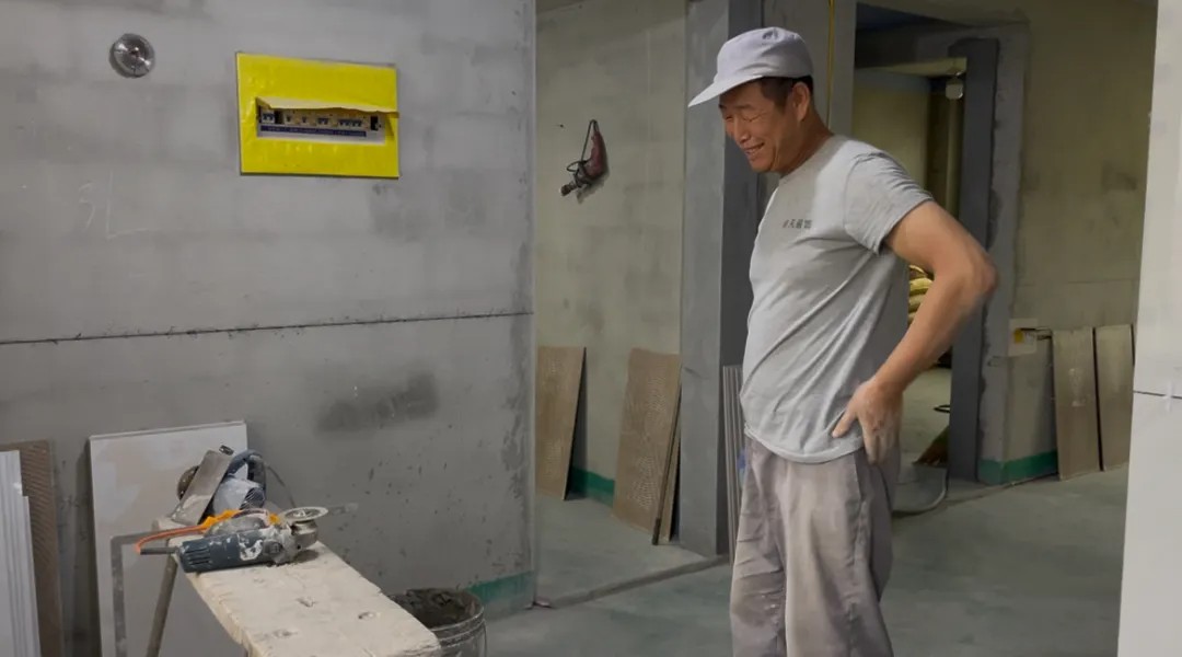 王志國有個(gè)標(biāo)志性動(dòng)作——貼磚前用錘子輕敲墻面。“空鼓的地方聲音不一樣,”他解釋,“發(fā)現(xiàn)空鼓就得先處理,不然以后磚會(huì)掉。”這個(gè)許多人忽略的步驟,他堅(jiān)持了二十年。他說:“墻不會(huì)說話,但你會(huì)聽,它就會(huì)告訴你問題在哪兒?!?/span>
