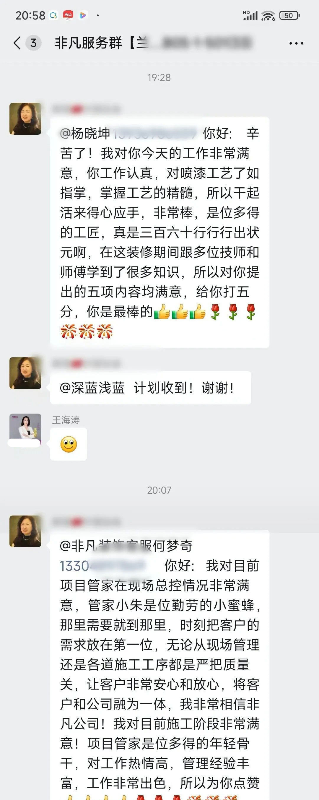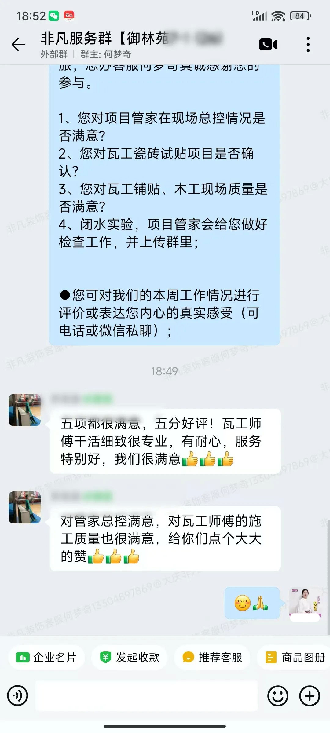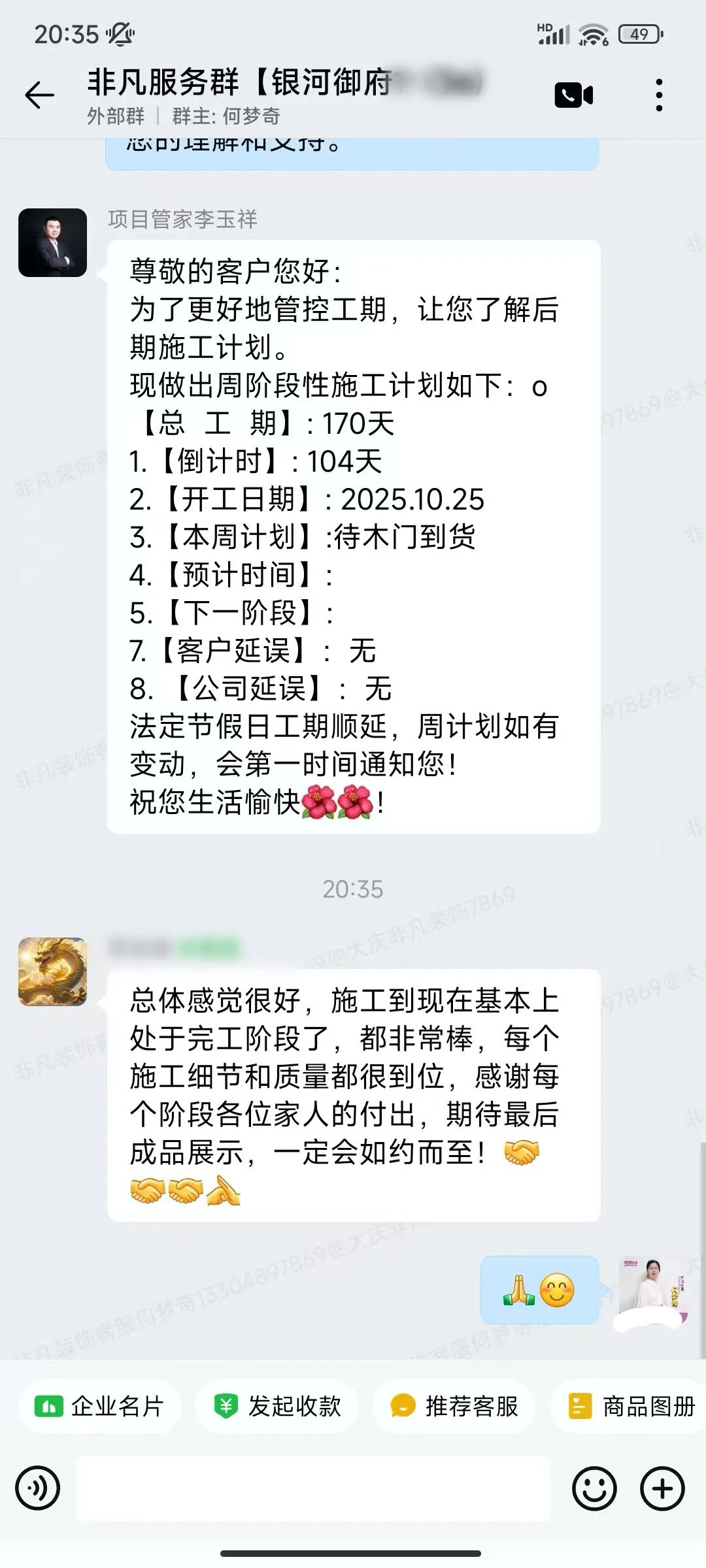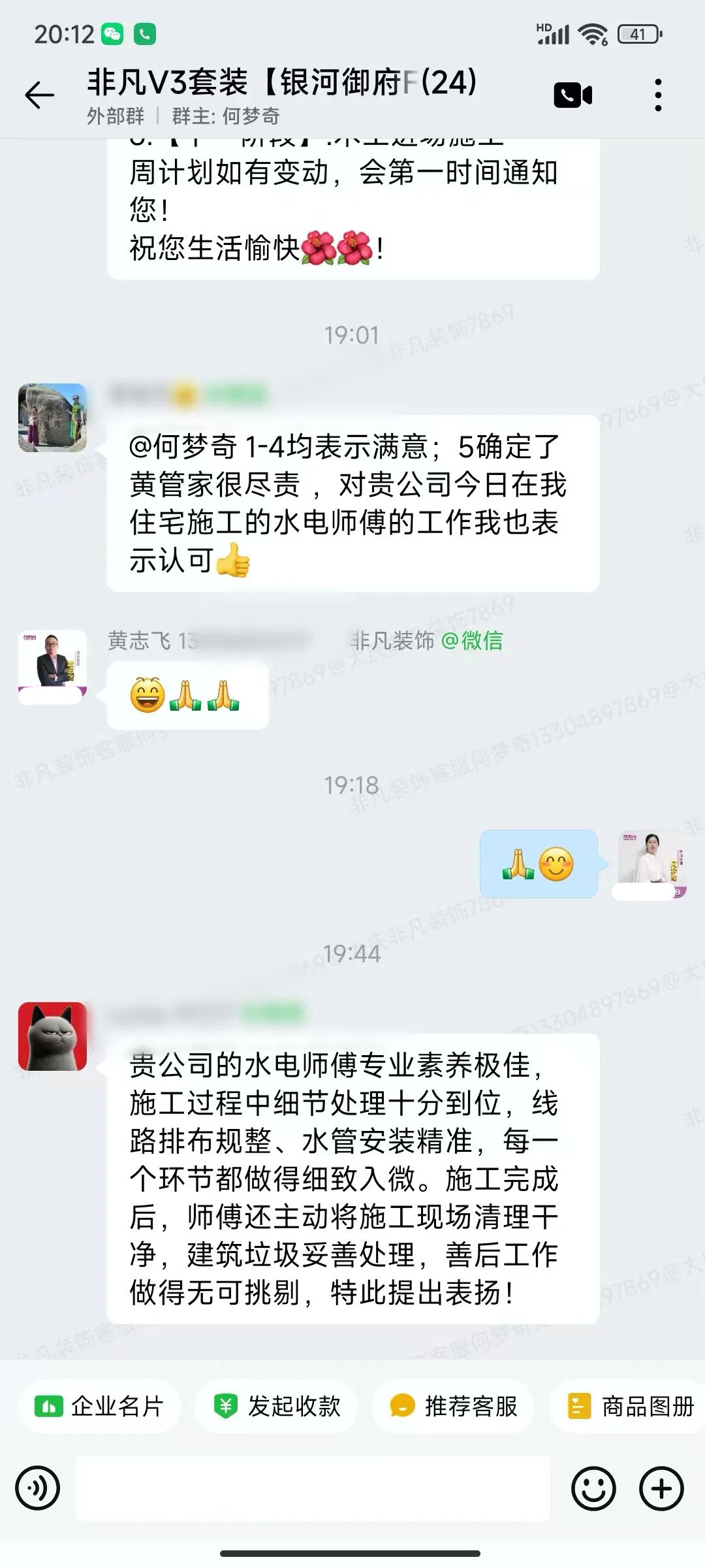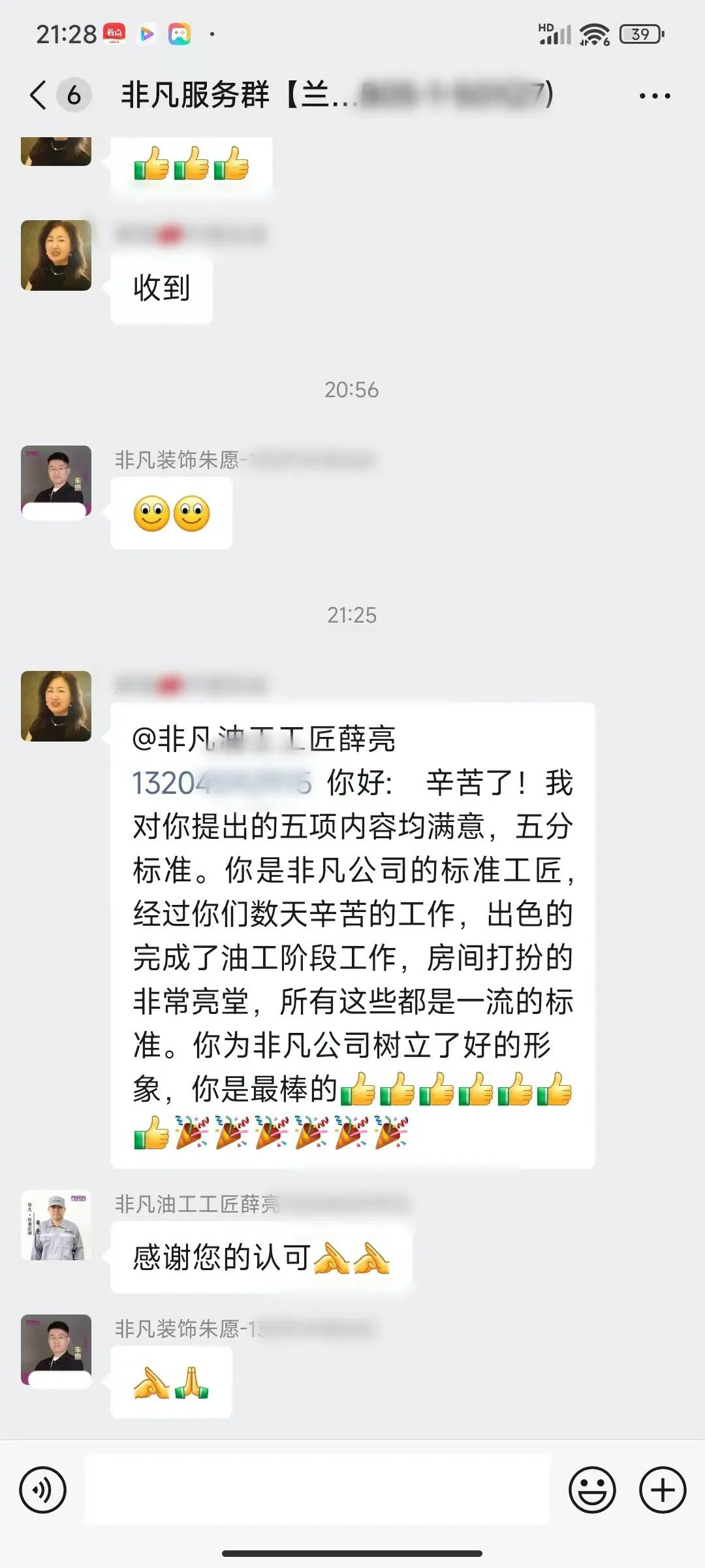 這一年,每個專屬服務(wù)群都像一座溫暖的燈塔。它不僅是進(jìn)度的播報站,更是隨時可問的答疑窗、突發(fā)狀況的應(yīng)急所。我們堅持用透明的信息流,驅(qū)散裝修中的未知與焦慮,讓您即使從未親臨工地,也能擁有如現(xiàn)場般的掌控感與安心。這份貫穿始終的陪伴,是我們對“服務(wù)”最基礎(chǔ)也最鄭重的承諾。