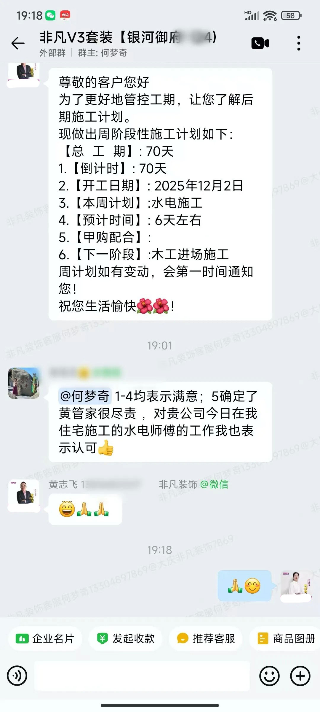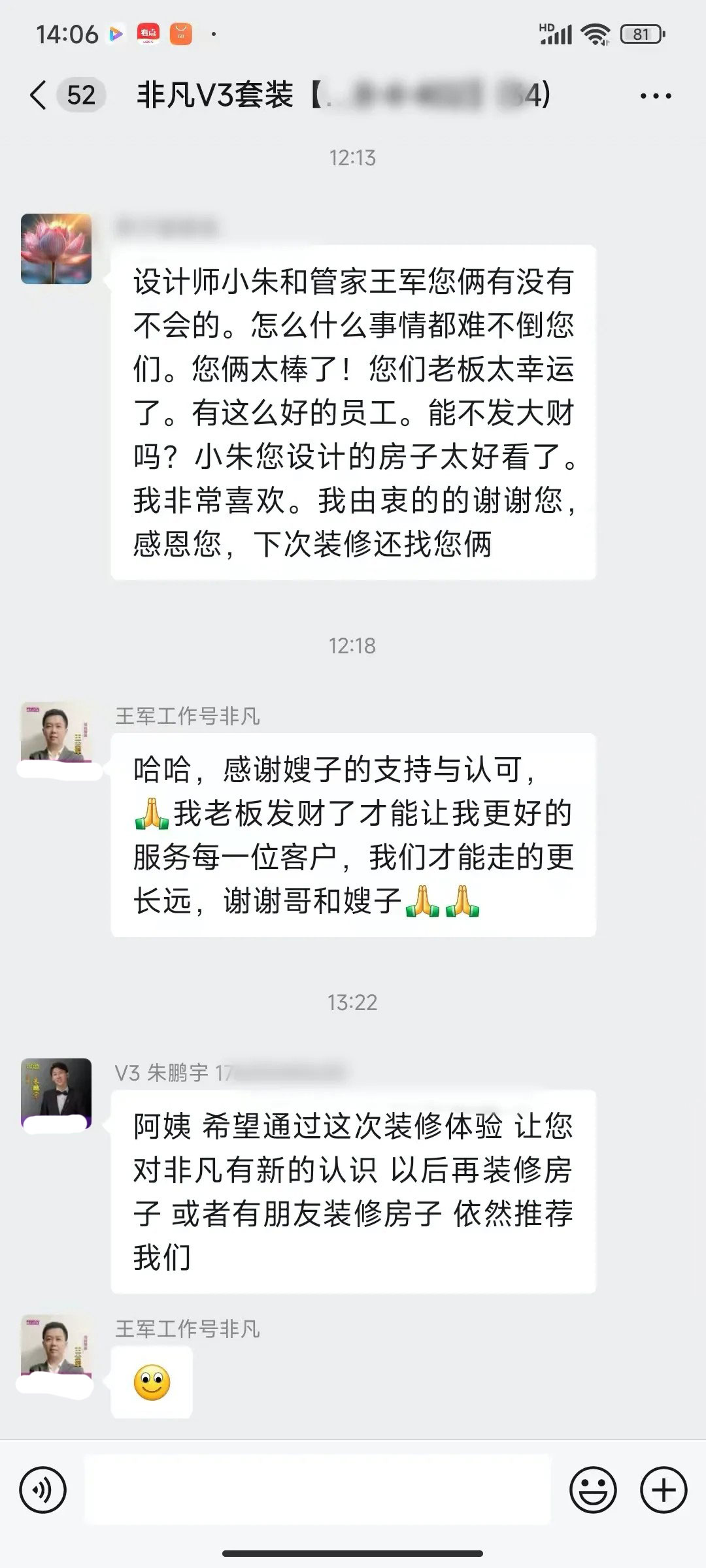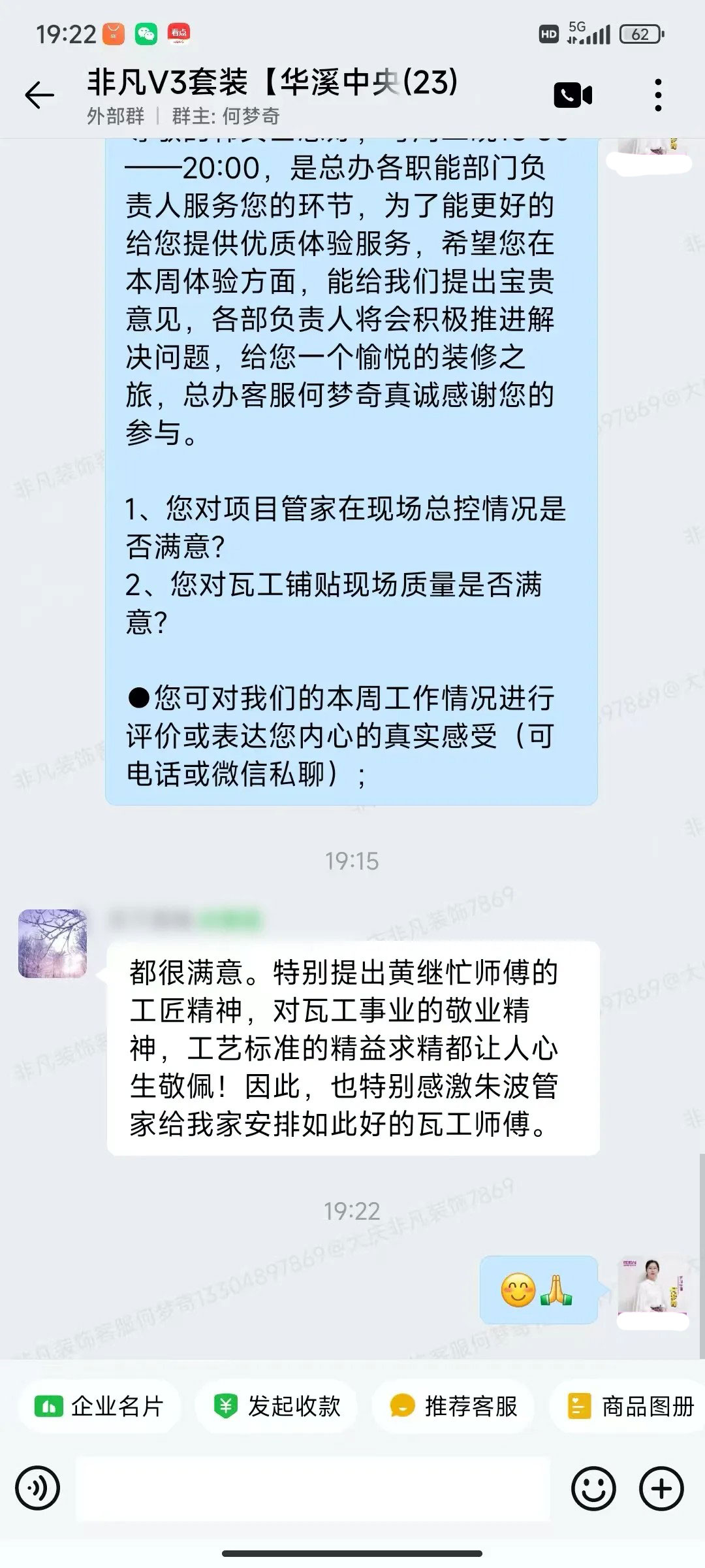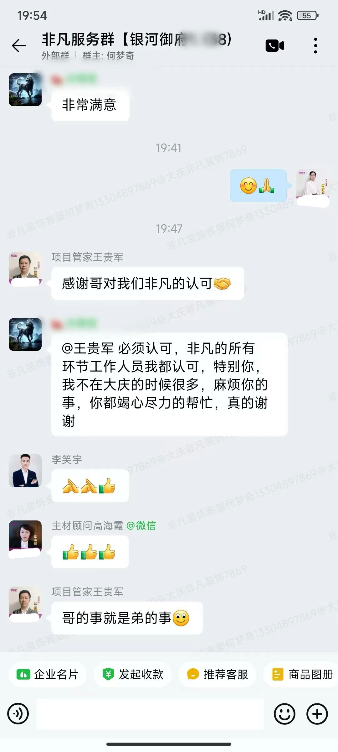 這一年,每個專屬服務(wù)群都像一座溫暖的燈塔。它不僅是進(jìn)度的播報站,更是隨時可問的答疑窗、突發(fā)狀況的應(yīng)急所。我們堅持用透明的信息流,驅(qū)散裝修中的未知與焦慮,讓您即使從未親臨工地,也能擁有如現(xiàn)場般的掌控感與安心。這份貫穿始終的陪伴,是我們對“服務(wù)”最基礎(chǔ)也最鄭重的承諾。