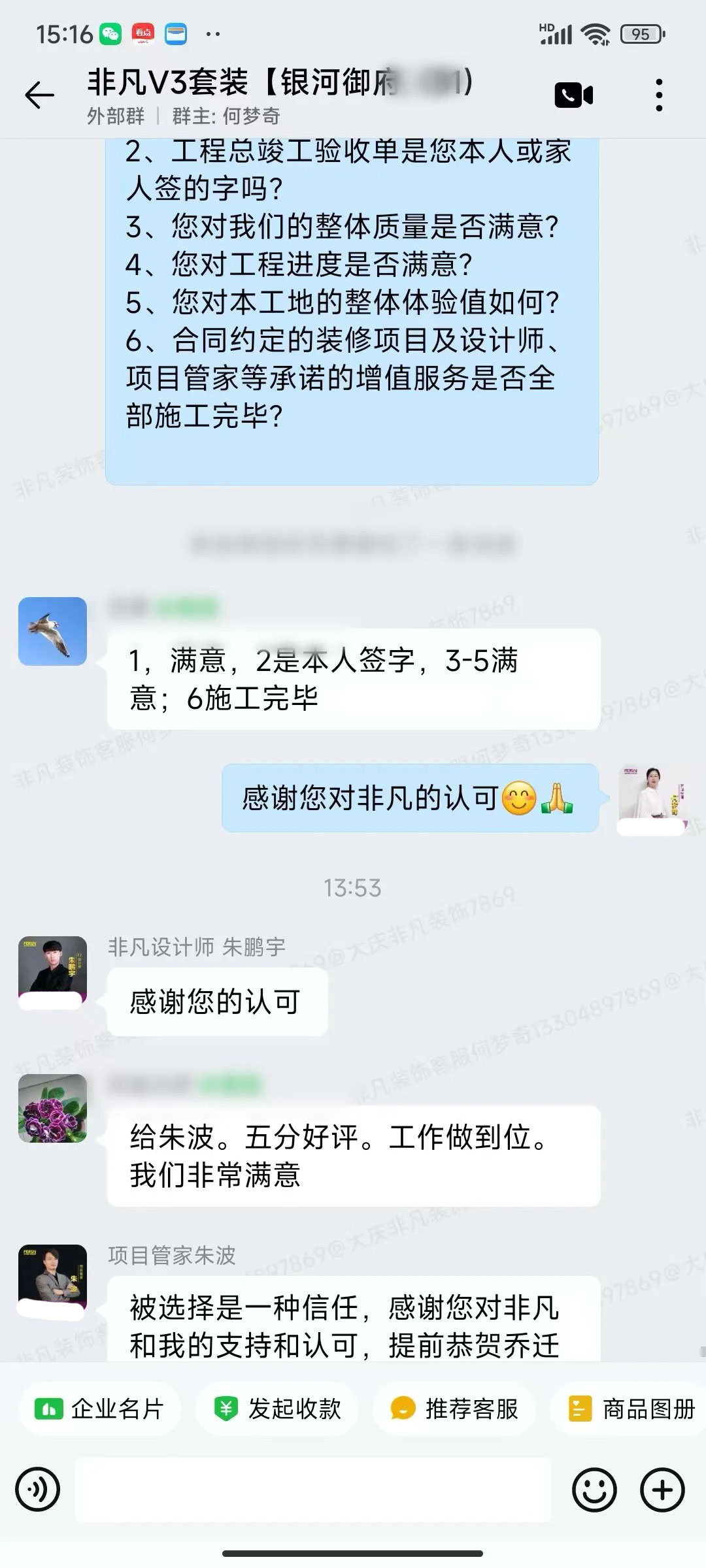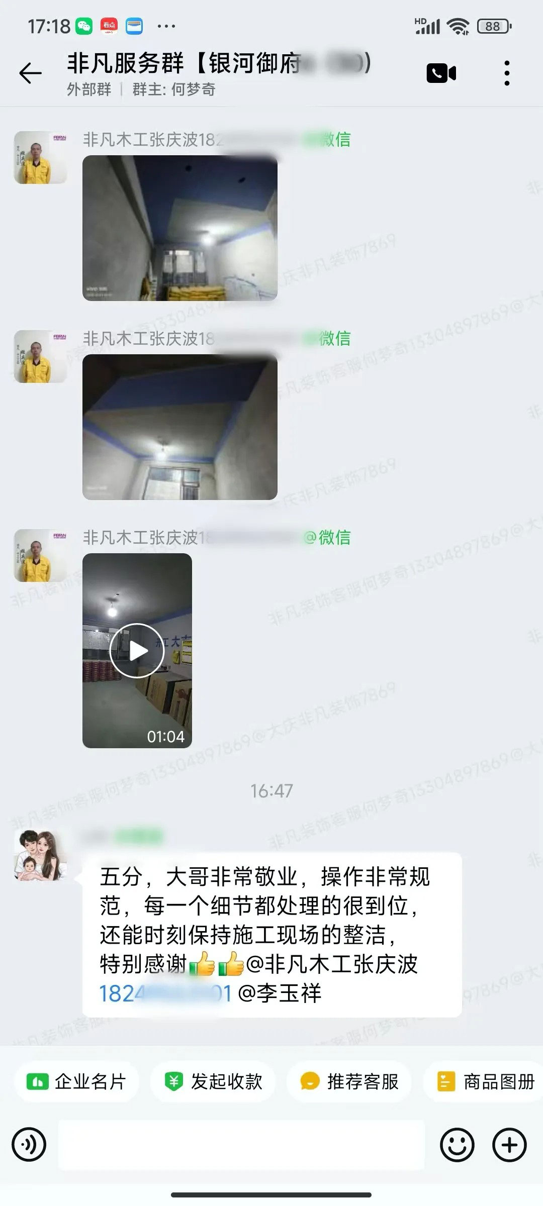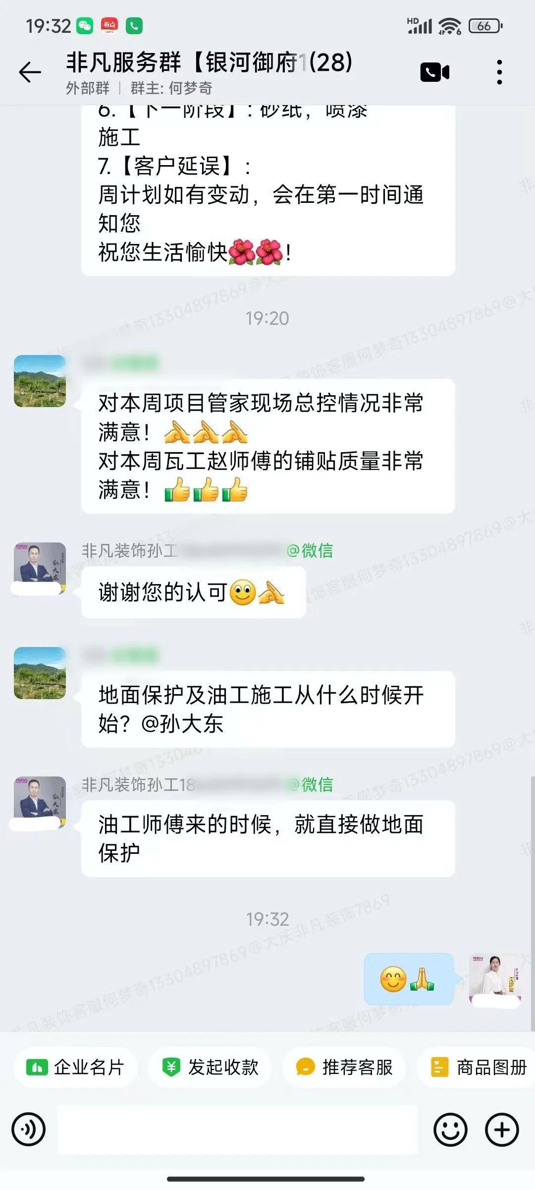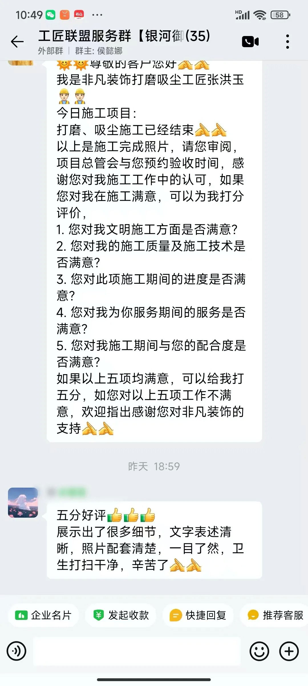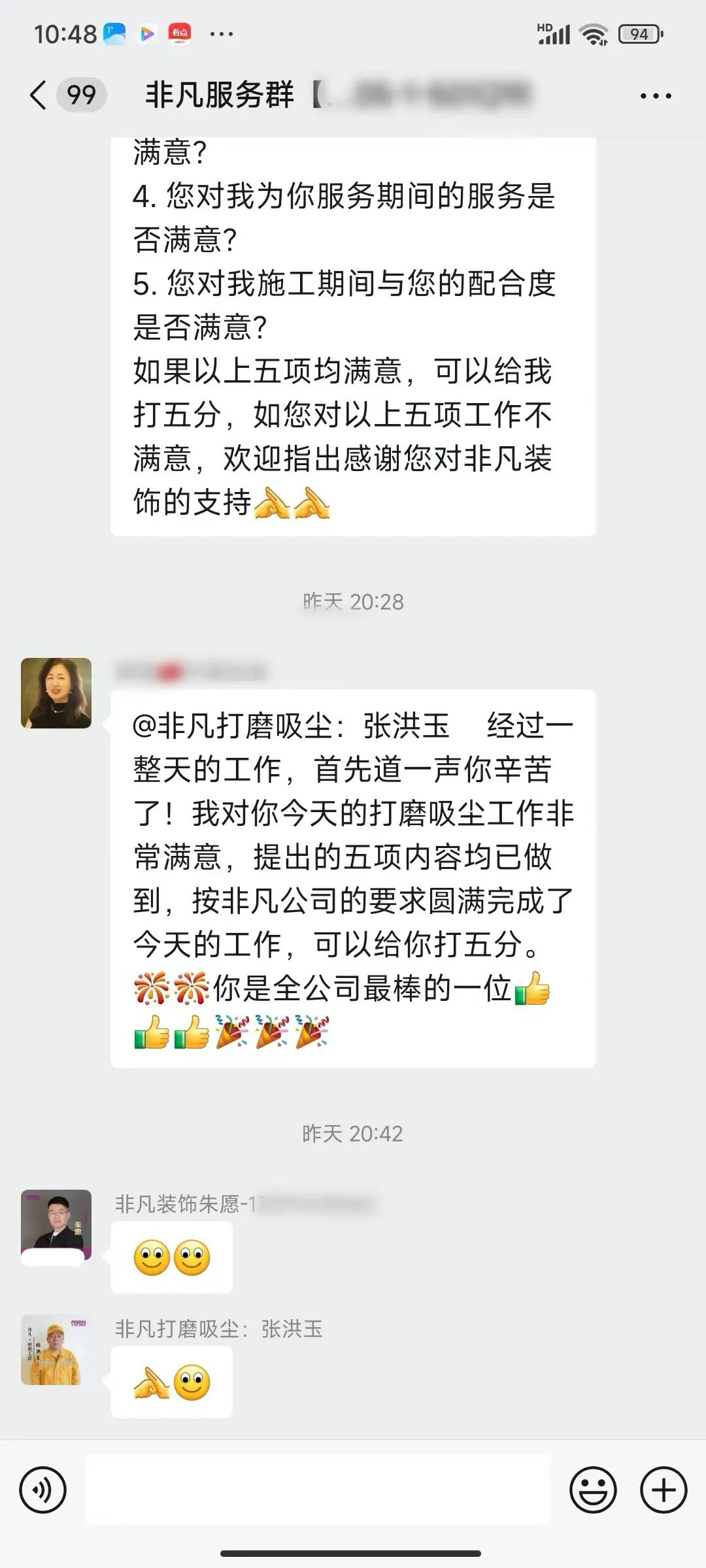 這一年,每個專屬服務(wù)群都像一座溫暖的燈塔。它不僅是進(jìn)度的播報站,更是隨時可問的答疑窗、突發(fā)狀況的應(yīng)急所。我們堅持用透明的信息流,驅(qū)散裝修中的未知與焦慮,讓您即使從未親臨工地,也能擁有如現(xiàn)場般的掌控感與安心。這份貫穿始終的陪伴,是我們對“服務(wù)”最基礎(chǔ)也最鄭重的承諾。